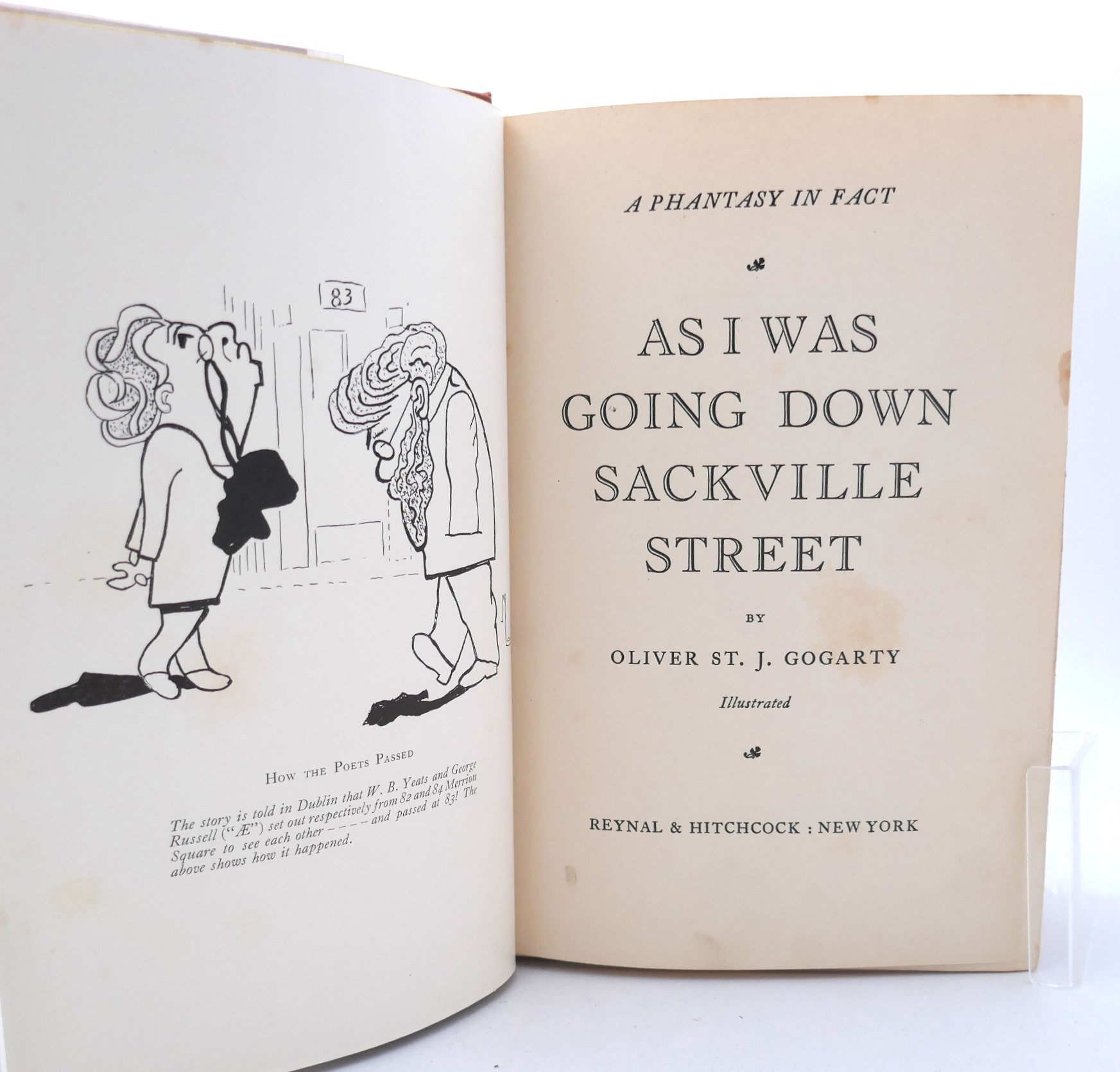 As I Was Going Down Sackville Street. A Phantasy in Fact. New York: Reynal, 1937. First American Edition. Pp, 342. Maroon cloth boards, lettered & with image in gilt, in publisher’s pictorial dust jacket. Jacket chipped with some loss, laid-on to stiff card, light fading to cloth boards, contents in nice bright condition.