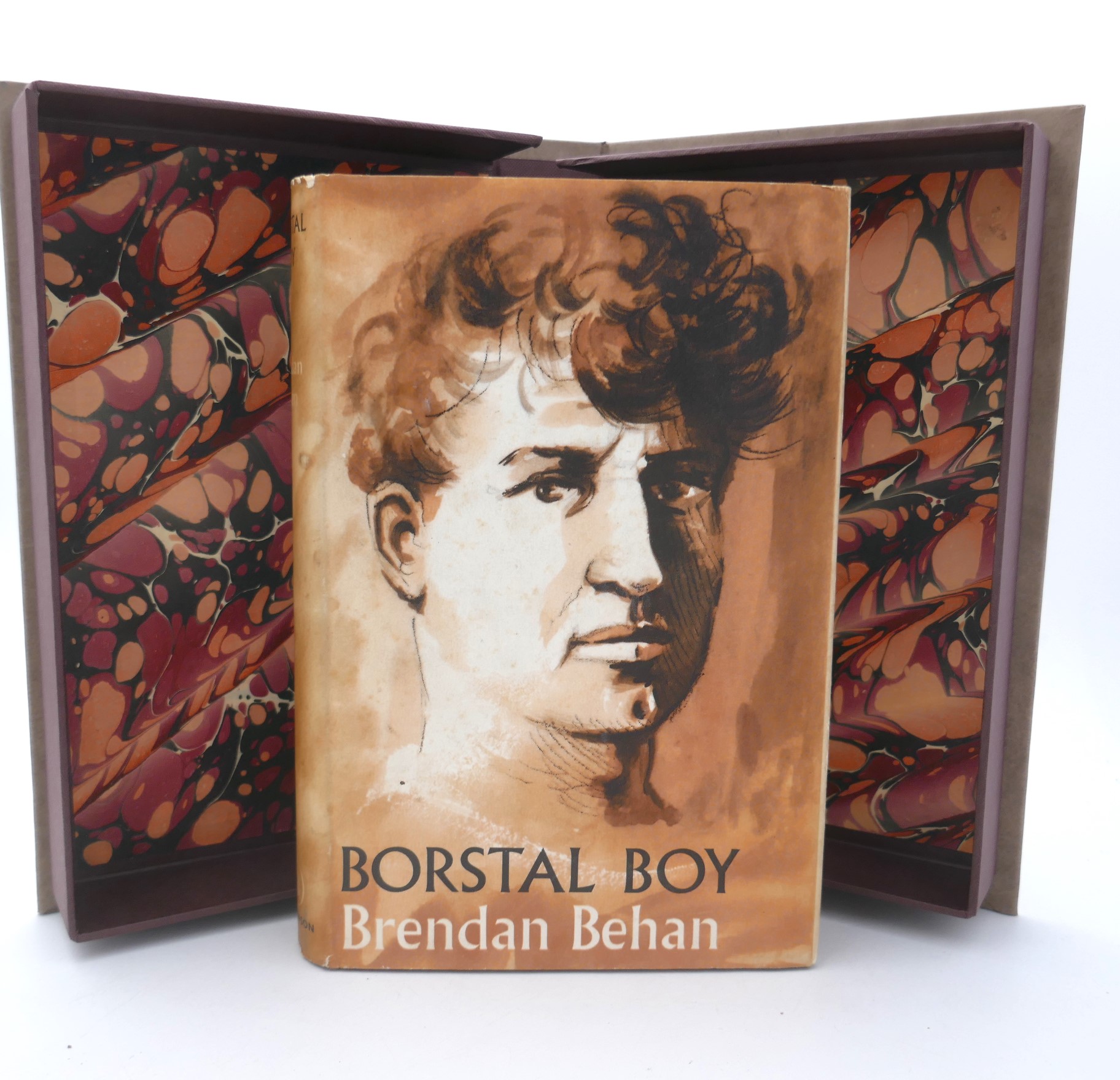 Borstal Boy. London: Hutchinsons, 1958. First Edition. Pp, 343. Frontispiece portrait of the author. Publisher’s mauve boards, title lettered in silver to spine in pictorial dust jacket designed by B.S. Brio. A nice bright copy. Housed in collector’s box.