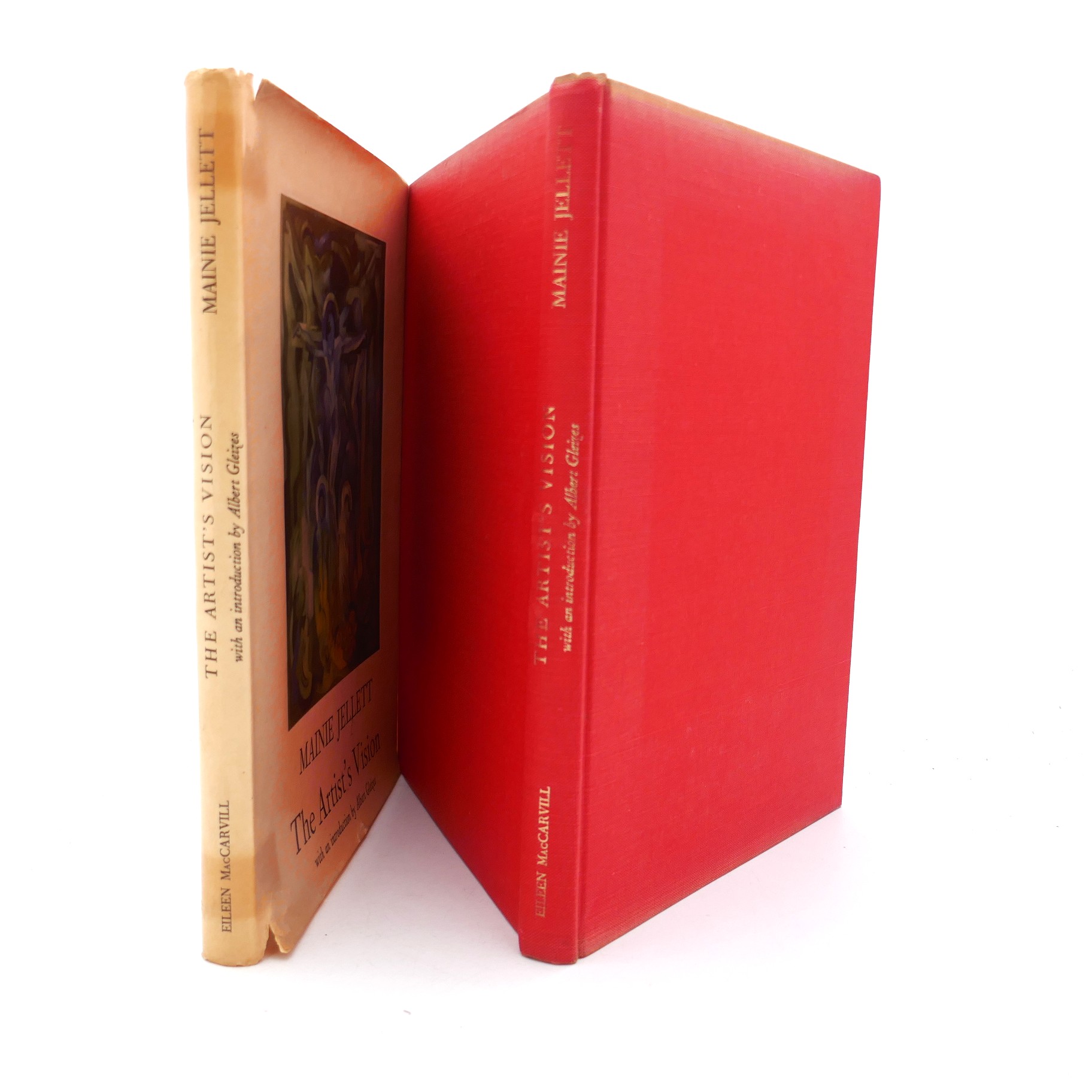 Mainie Jellett The Artist’s Vision. Lectures and Essays on Art. Introduction by Albert Gleizes. Edited by Eileen MacCarville. Dundalgan Press, Dundalk, 1958. First Edition. Pp , 120. Red cloth boards, title lettered in gilt to spine, in publisher’s pictorial dust jacket. Jacket age-toned, light fading along margins of boards, contents pages in nice bright condition.
