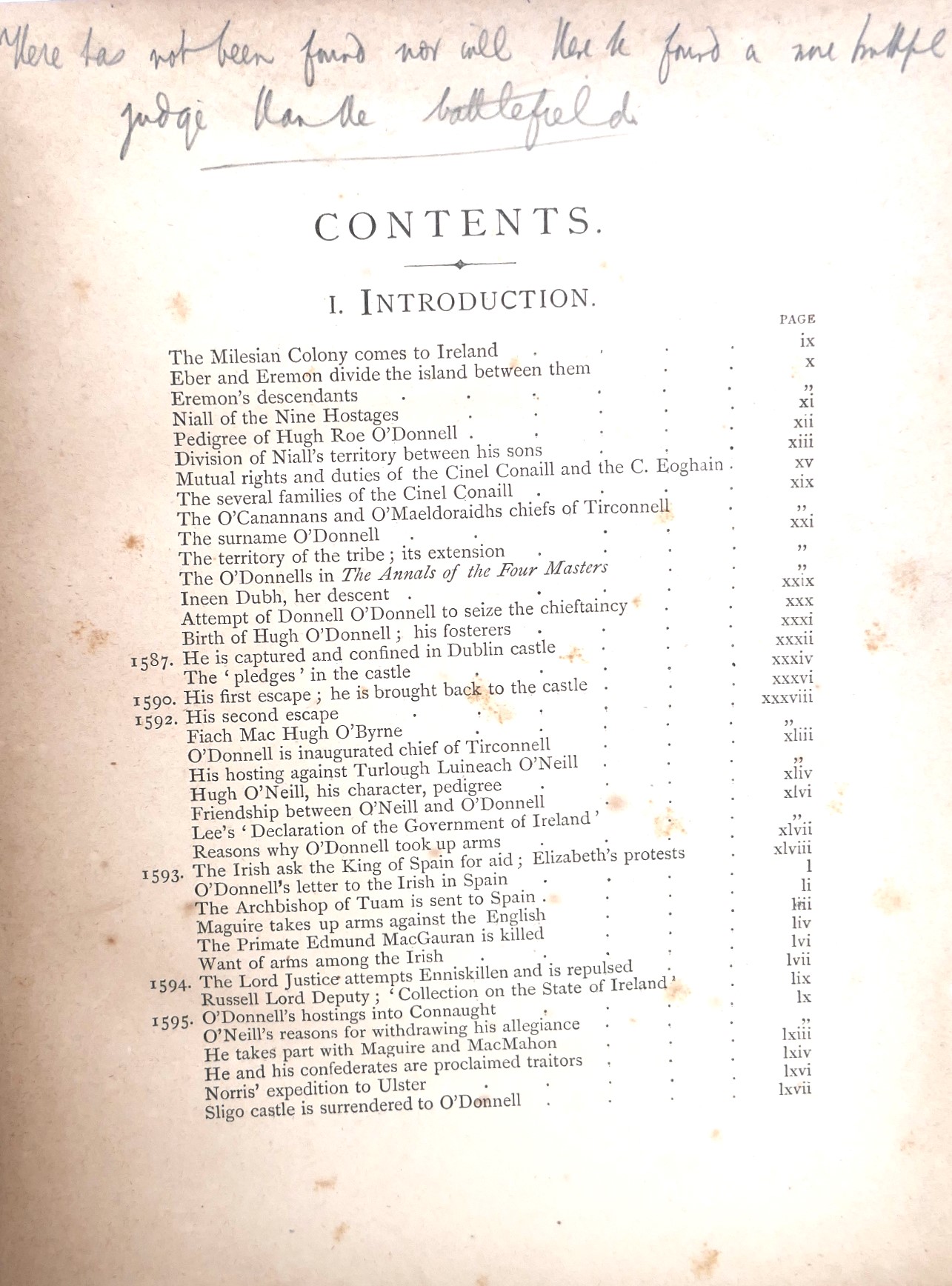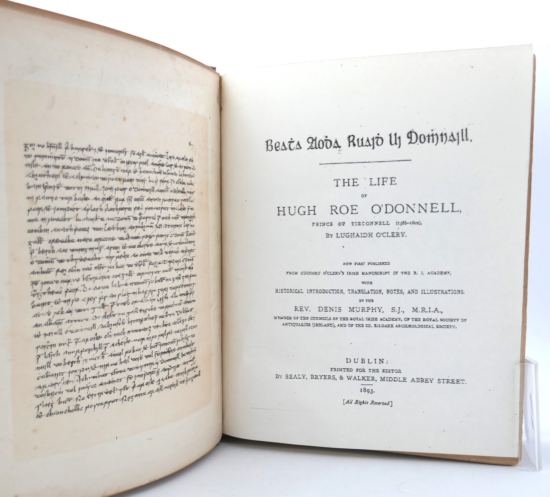 The Life of Hugh Roe O’Donnell. Beatha Aodha Ruaidh Ui Domhnaill. Prince of Tirconnell, (1586-1602). Now First Published From Cucogry O’Clery’s Irish Manuscript in the R.I. A., with Historical, Introduction, Translation, Notes, and Illustrations by Rev. Denis Murphy. Dublin: Fallon, 1895. Pp, clviii, 338. Rebound in quarter leather over cloth boards, title lettered in gilt to spine. Facsimile title page, pencil annotations throughout the text.