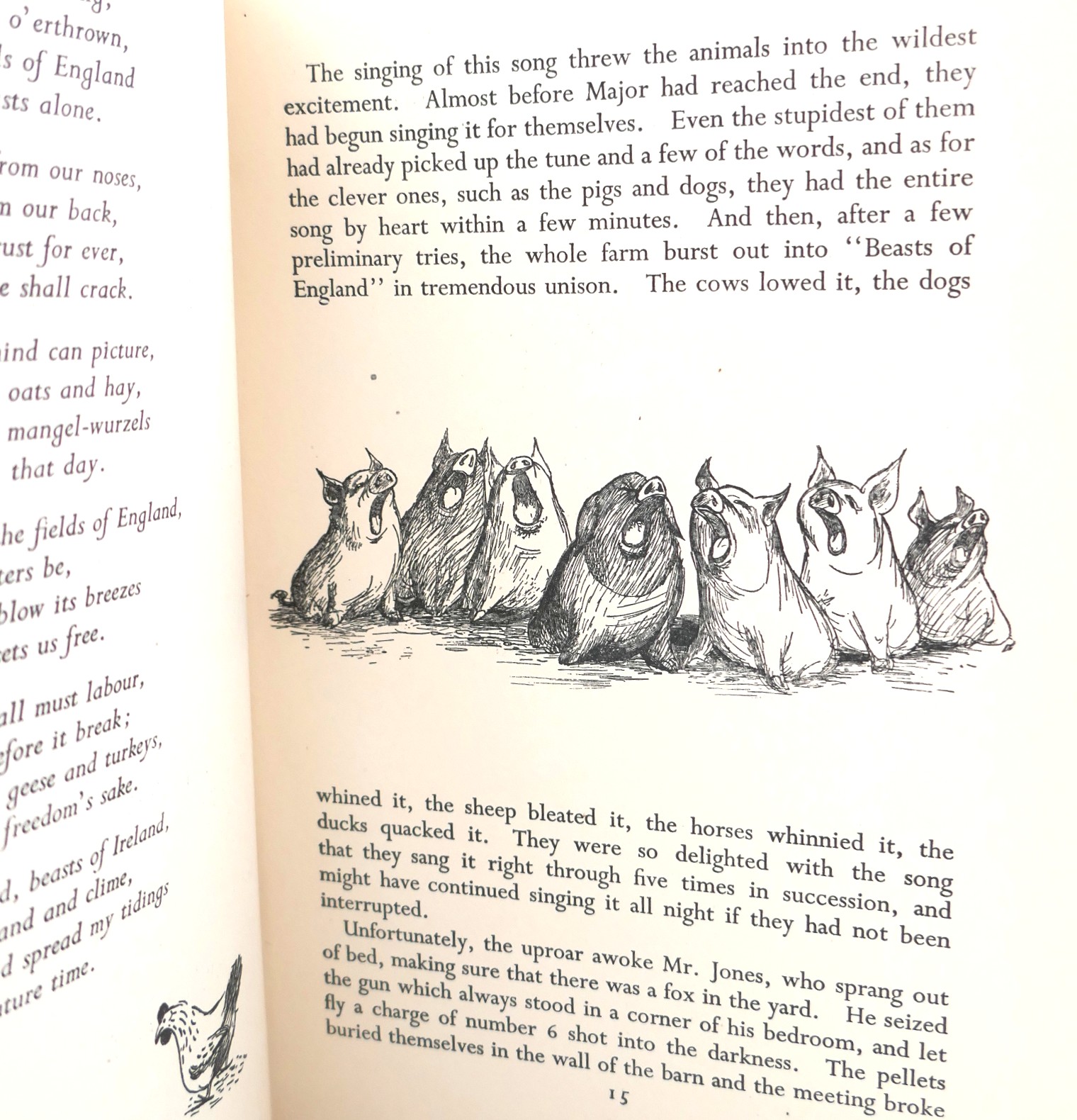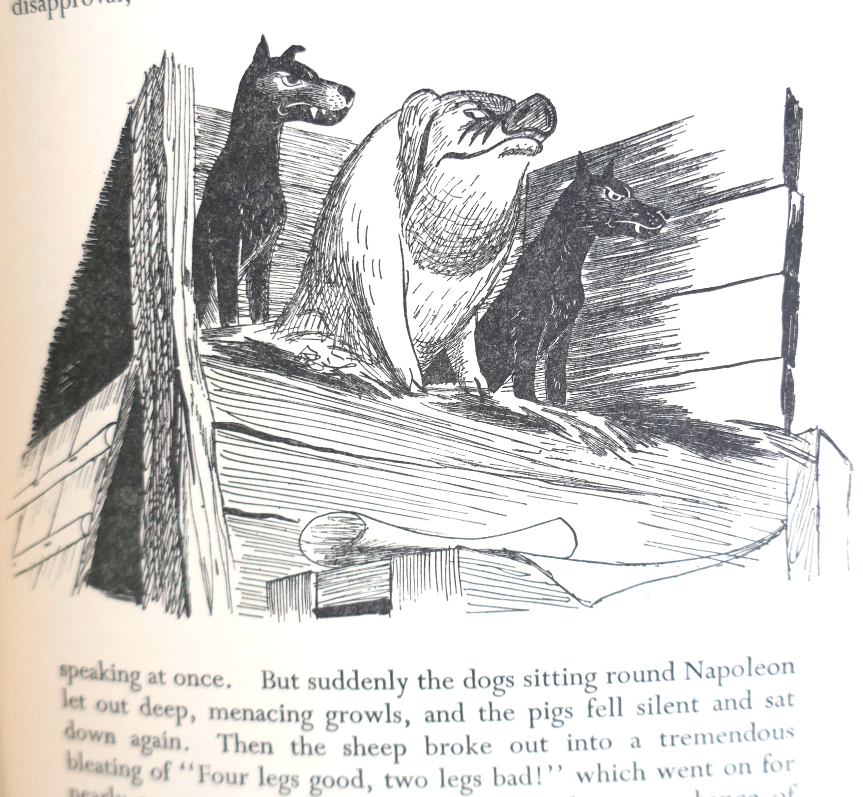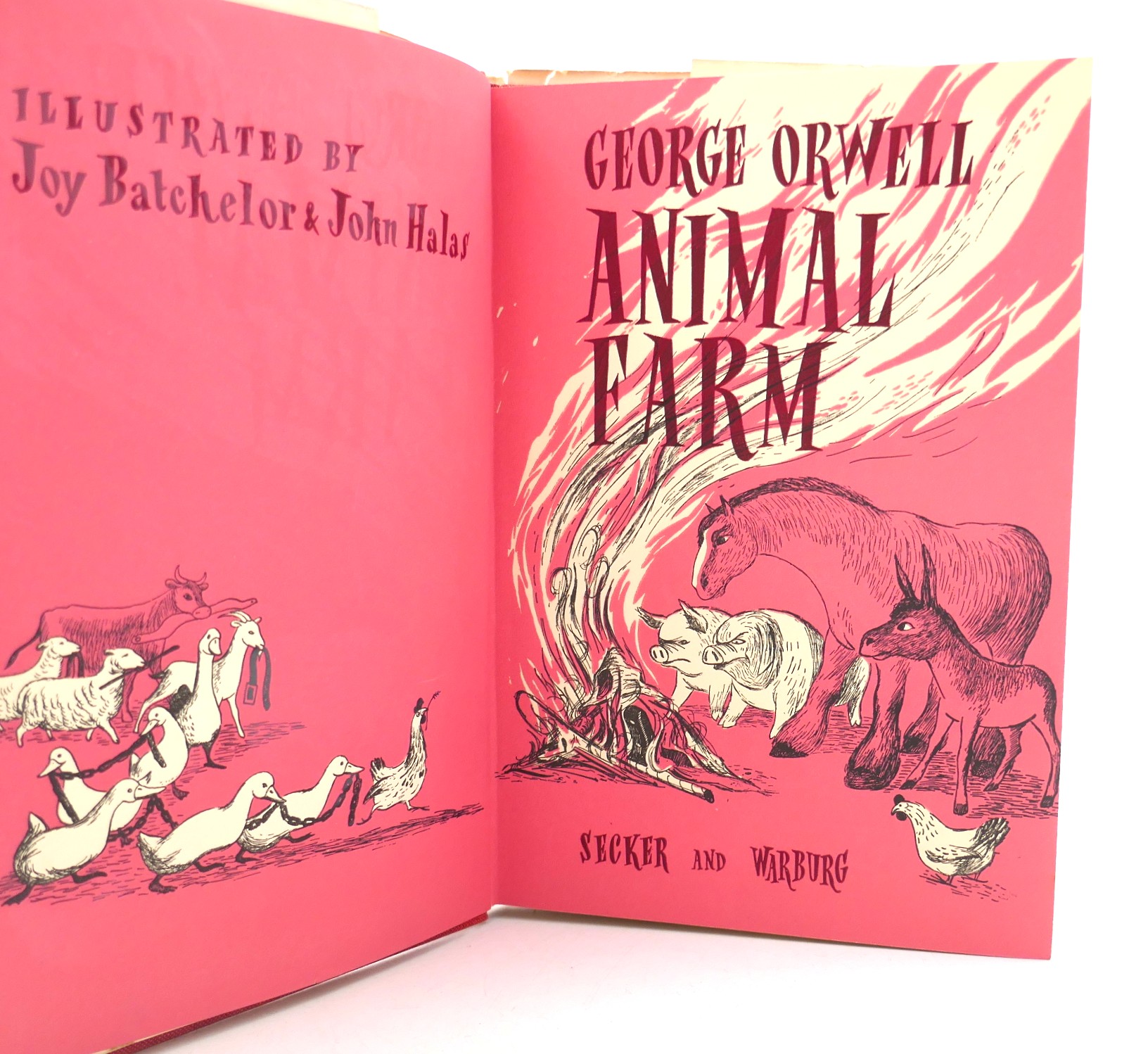 Animal Farm. Illustrated by Joy Batchelor and John Halas. London: Secker & Warburg, 1954. First Edition Thus. Pp, 108. Cloth boards in pictorial dust jacket. Jacket price-clipped dust jacket, tape residual marks to corners of endpapers, otherwise a nice bright copy.