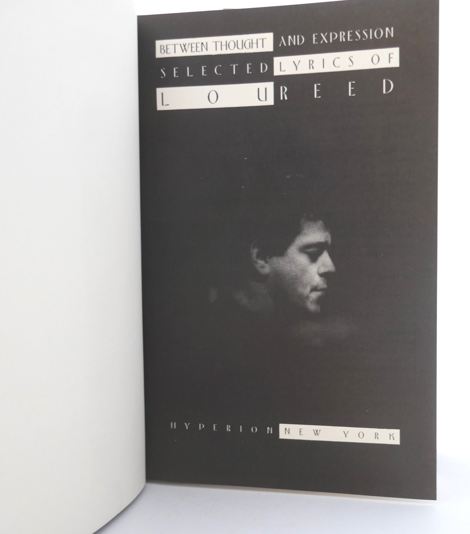 Between Thought and Expression. Selected Lyrics of Lou Reed. New York: Hyperion, 1991. First Edition, First Issue. Quarter cloth over paper boards, in pictorial dust jacket. A fine bright copy.