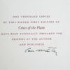 Limited Edition 1000 Copies, for friends of the author and publisher, Signed by the Author.