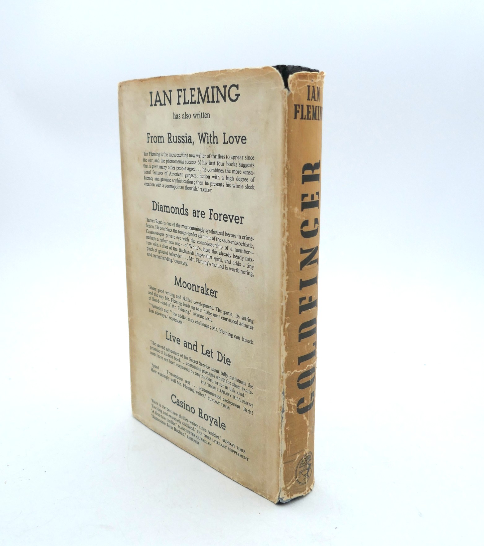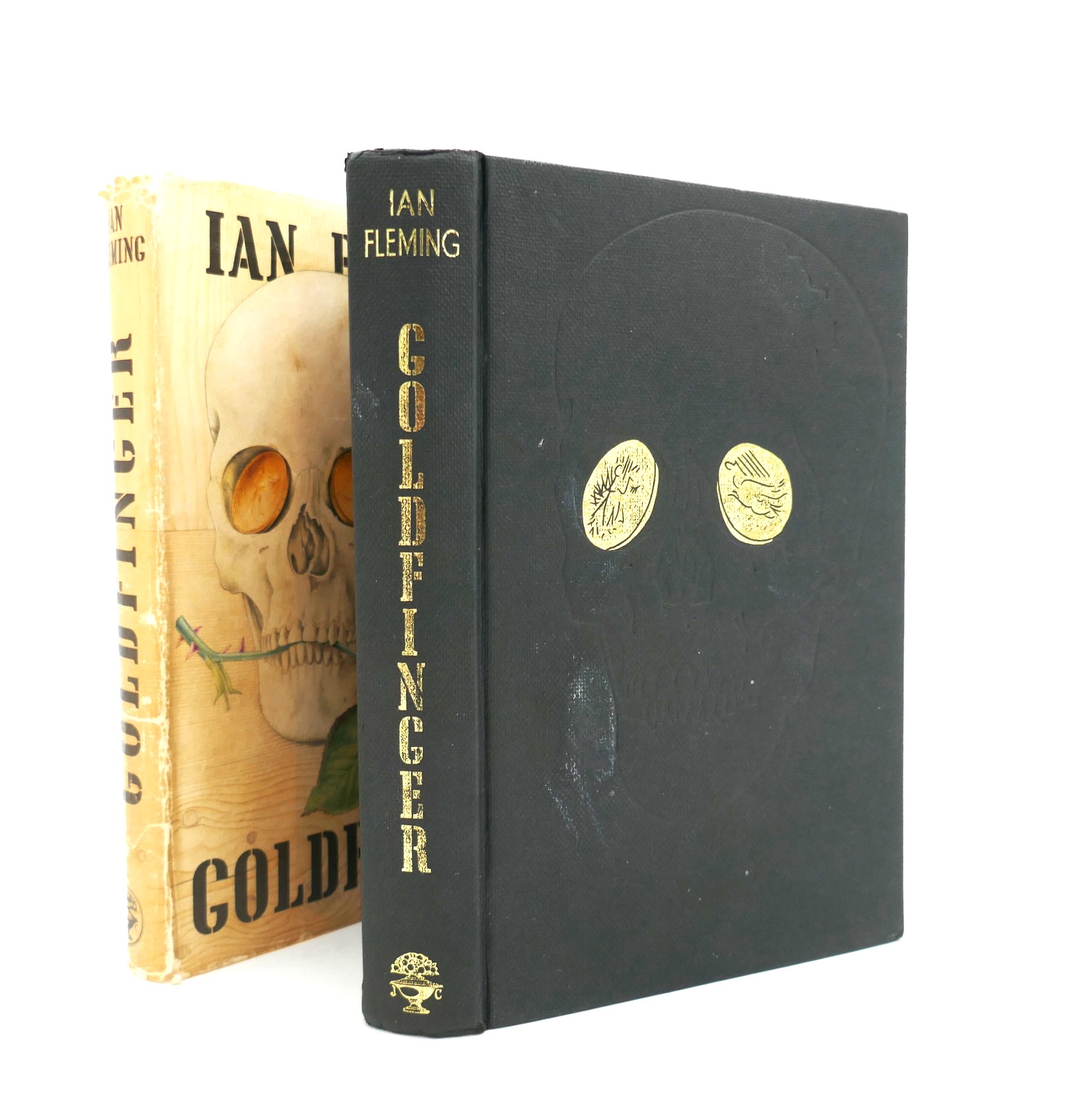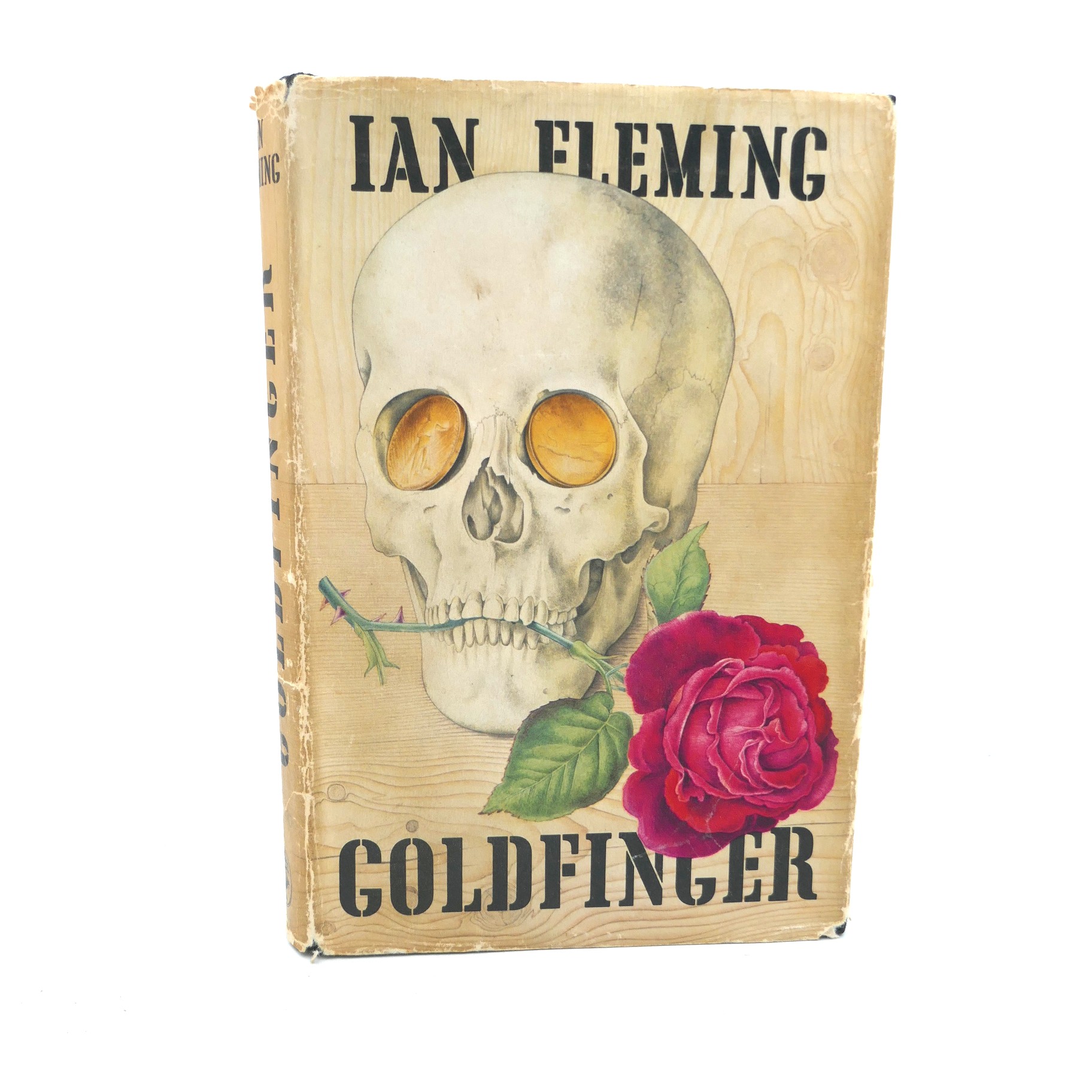 Goldfinger. London: Jonathan Cape,1959. Frist Edition. Black cloth boards with golden coin eyes and Skull blind stamped to upper cover, in publisher’s pictorial dust jacket, designed by Richard Chopping. Light shelf-wear to jacket, with tape repair to lower portion of the spine, light rubbing to cloth, neat ownership name to endpaper, otherwise a nice bright copy.