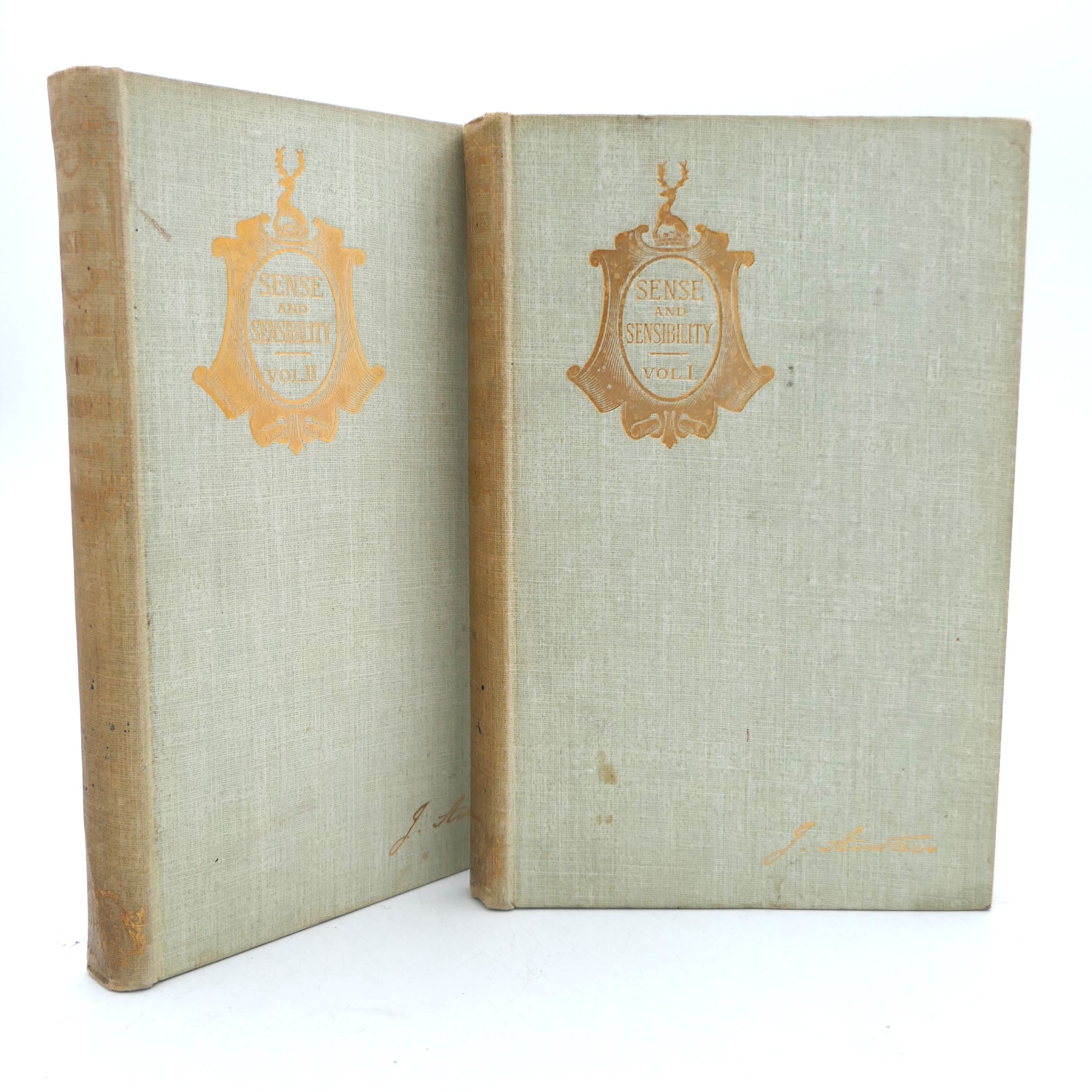 Sense and Sensibility. Edited by R. Brimley Johnson. With Illustrations by William C. Cooke. London: J.M. Dent, 1893. Third Edition Thus. Publisher’s smooth pale green buckram, title lettered in gilt to spines with title within gilt medallion to upper covers. Light shelf-wear to boards, otherwise a nice bright set.