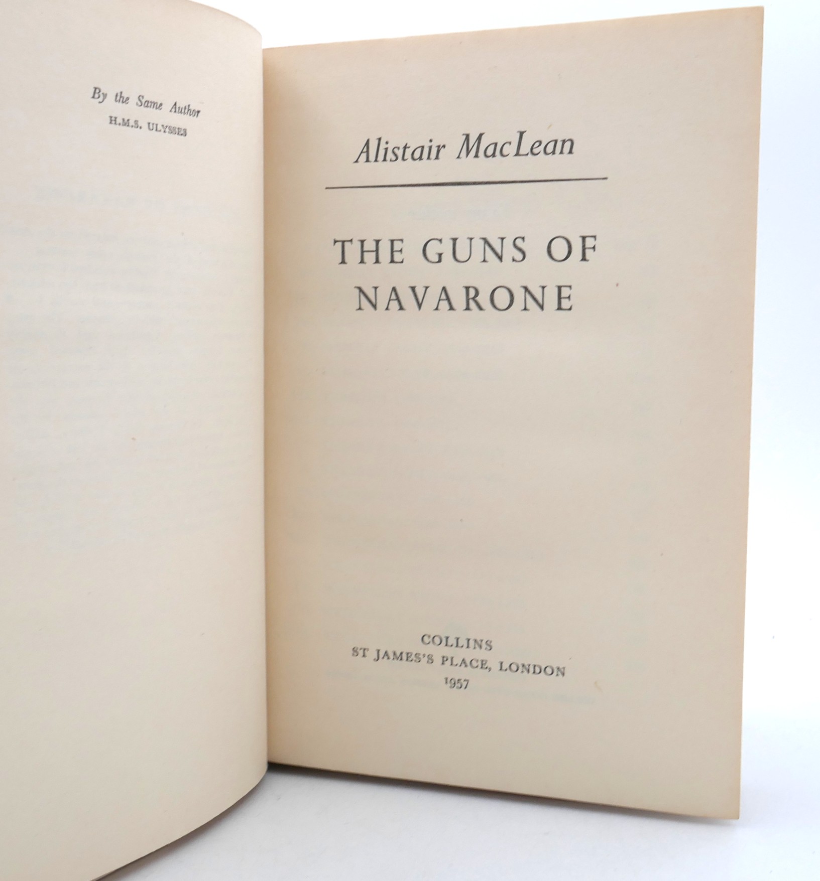 The Guns of Navarone. London: Collins, 1957. First Edition. Cloth boards in pictorial dust jacket. A nice bright copy.