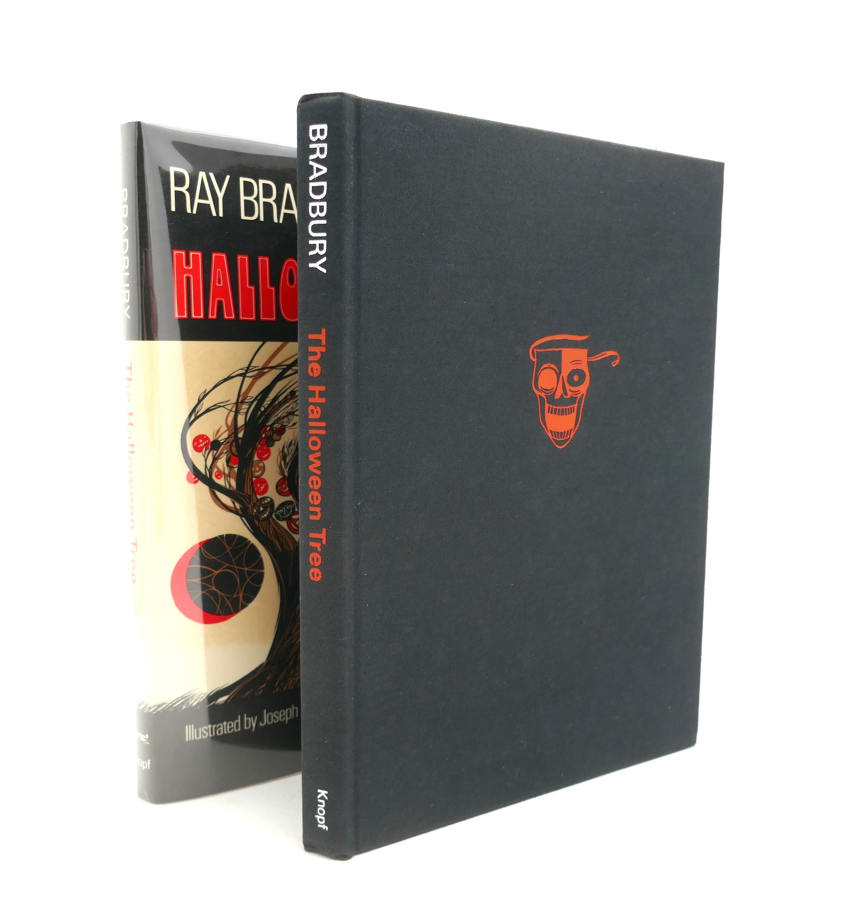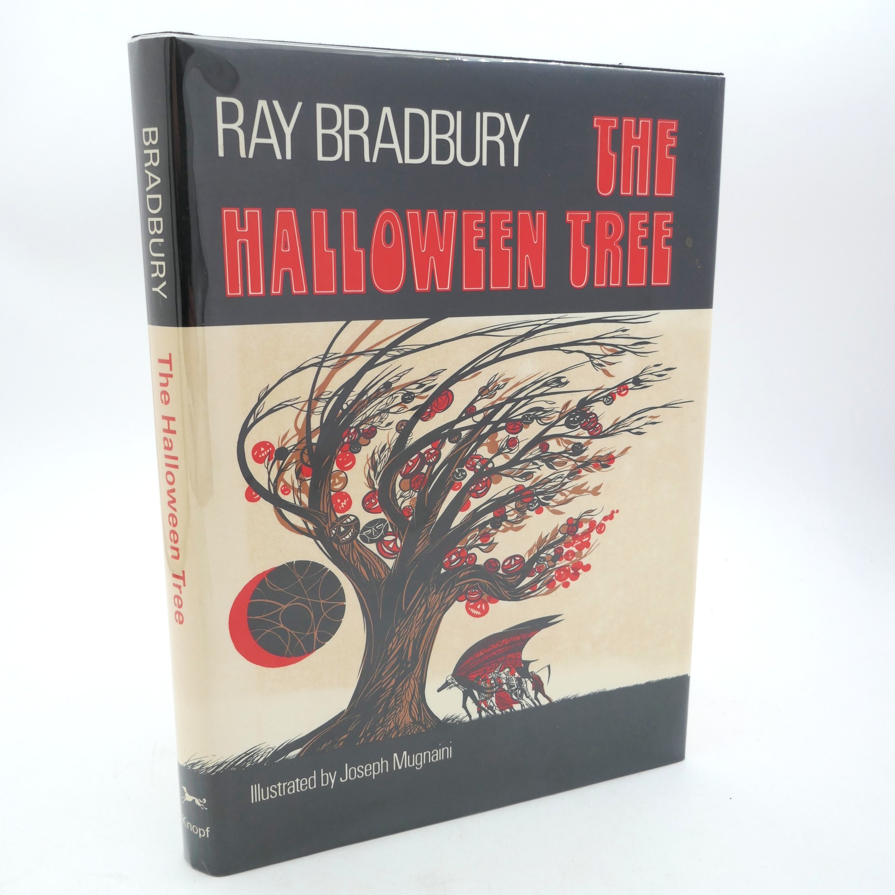 The Halloween Tree. Illustrated by Joe Mugnaini. New York: Alfred A. Knopf, 1972. First Edition. Publisher’s black cloth with lettering and small mask illustration in silver and red in the Mugnaini illustrated dust jacket with light rubbing. The $3.95 price on the front flap is present.