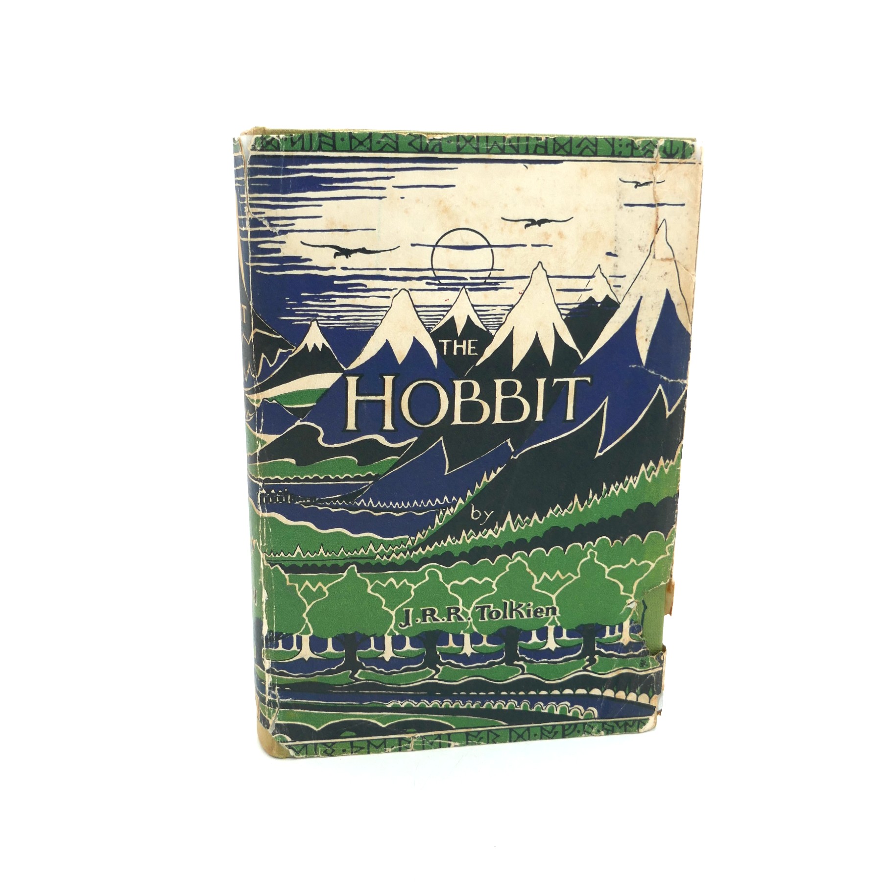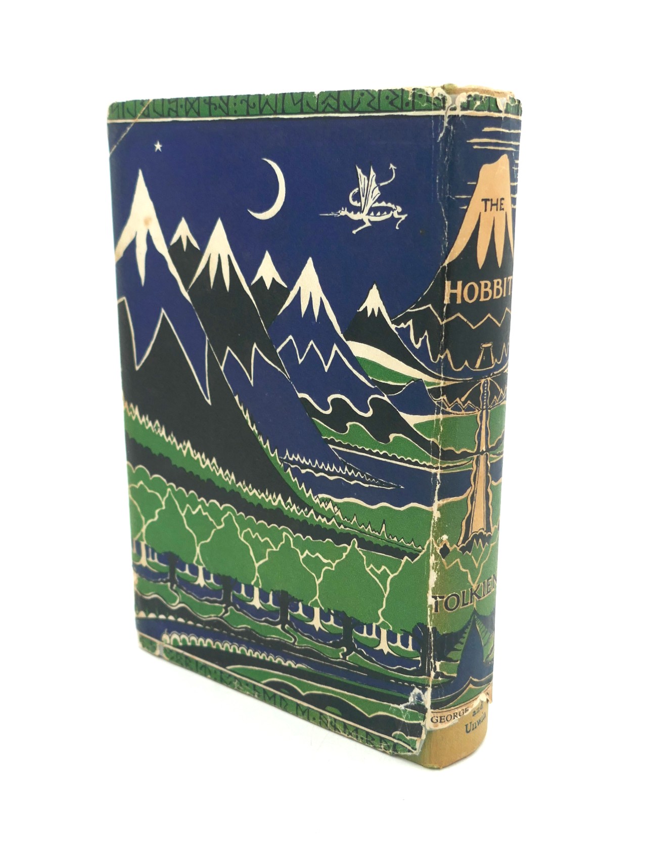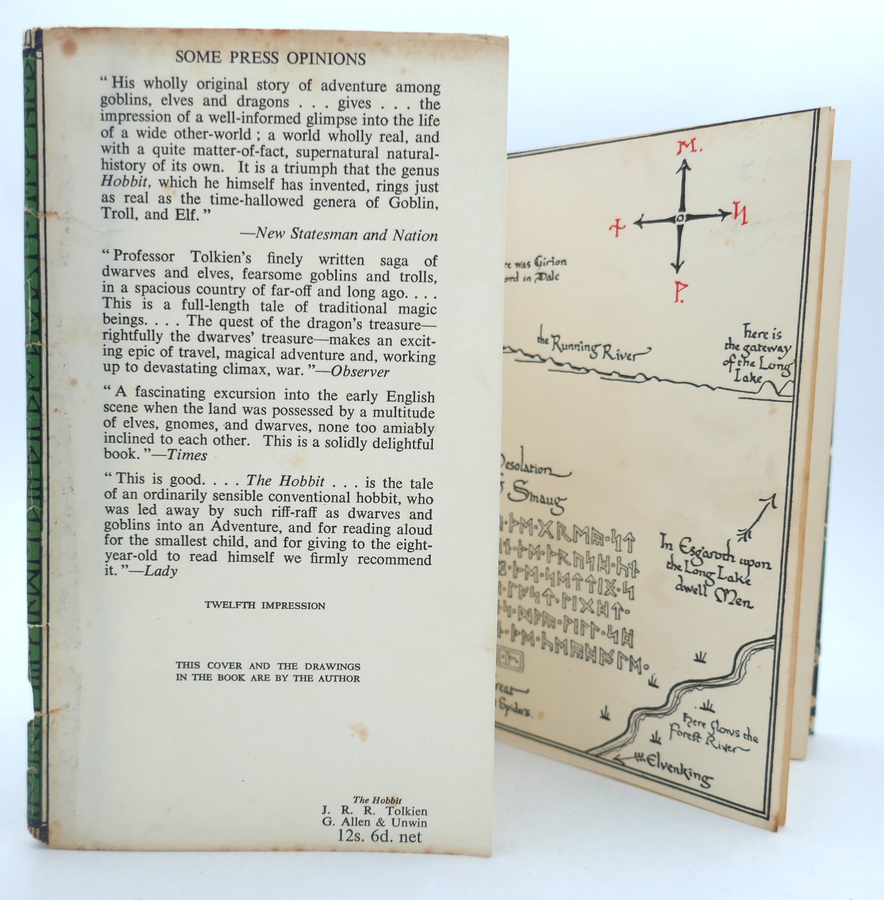 The Hobbit or There and Back Again. London: George Allen, 1961. Second Edition, Twelfth Impression. Green cloth boards in pictorial dust jacket. The Jacket is chipped with some loss to tail of spine, and upper flap fold, pale spotting to title page, otherwise a nice bright copy.