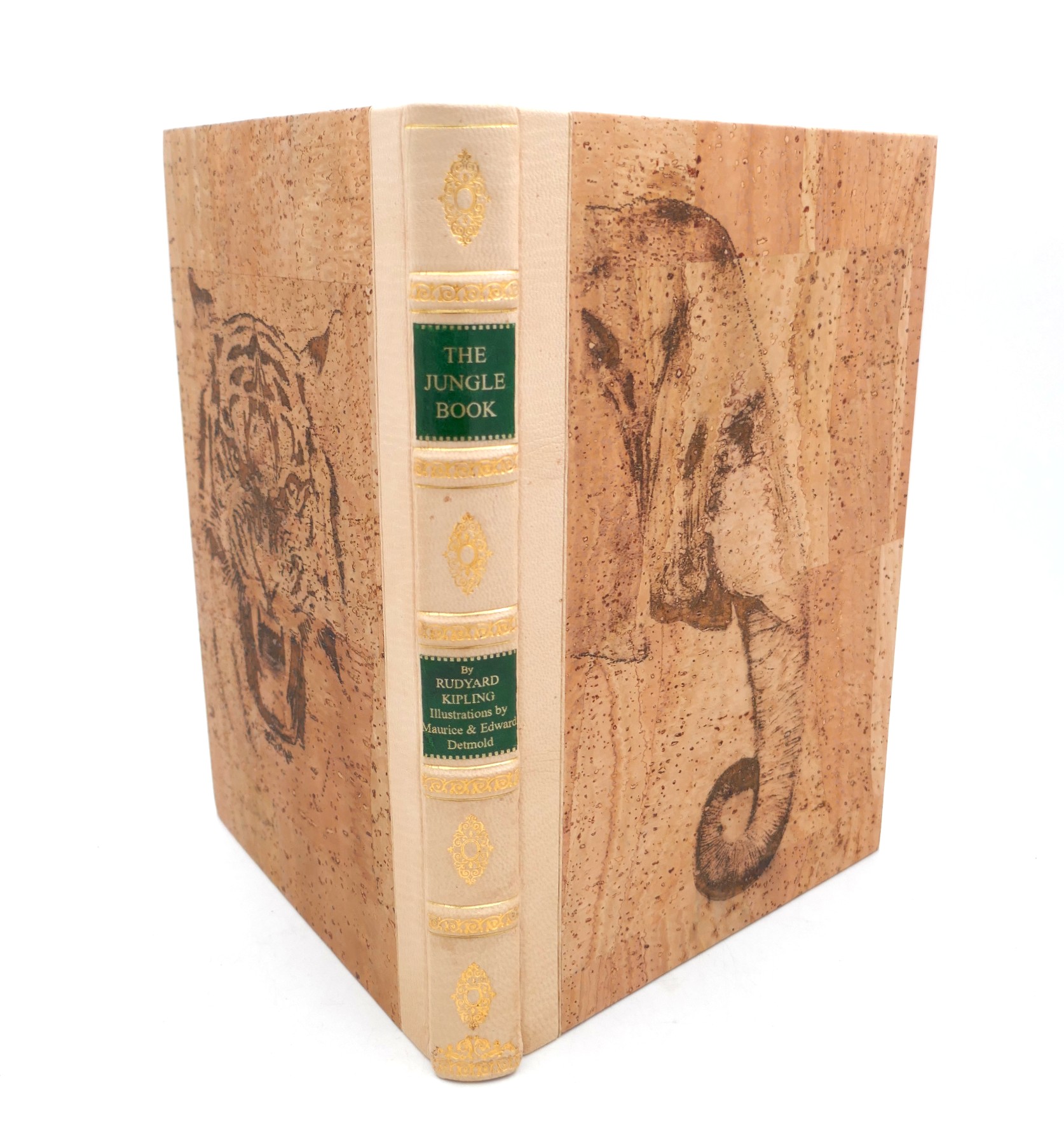 The Jungle Book. Illustrations by Maurice & Edward Detmold. Special Edition Printed by Little Oak Fine Bindings ( 2025). Pp 156, all edges gilt. Bound in quarter goat skin over cork pictorial boards, marbled endpapers. Spine with raised bands & compartments lettered and tooled in gilt. Housed in a cloth solander box.