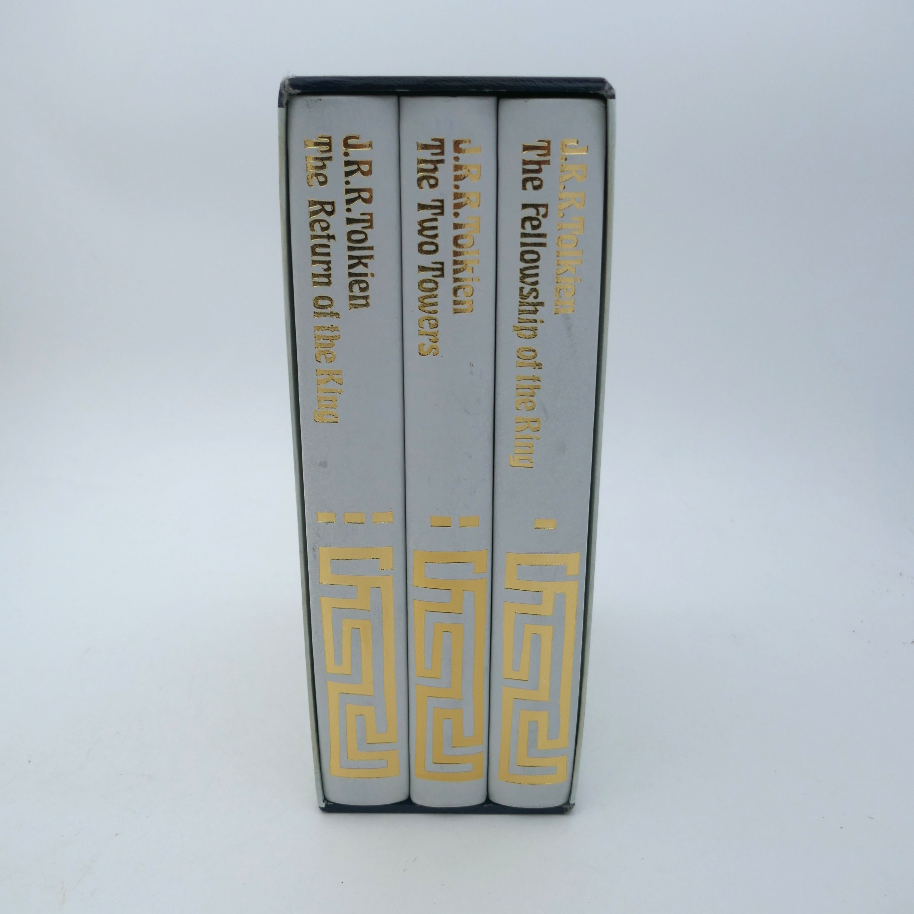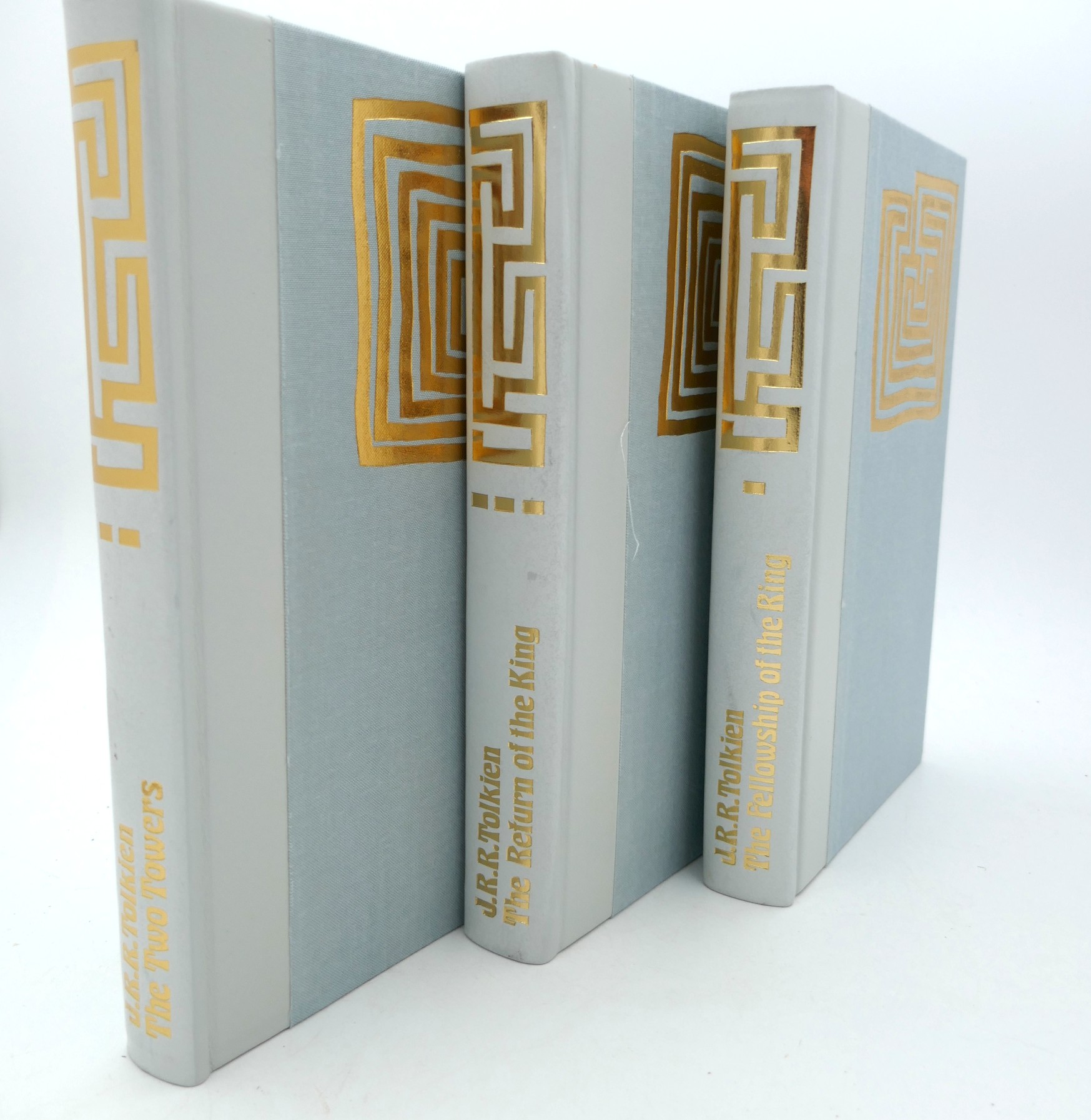 The Lord of The Rings. Comprising of: The Fellowship of the Ring; The Two Towers and The Return of the Kings. London: Folio Society, 1977. First Edition Thus. Quarter grey leather binding with grey cloth over boards, gilt titles & gilt embellishments to spines & upper covers; map endpapers. A fine bright set, housed in publisher’s slipcase.