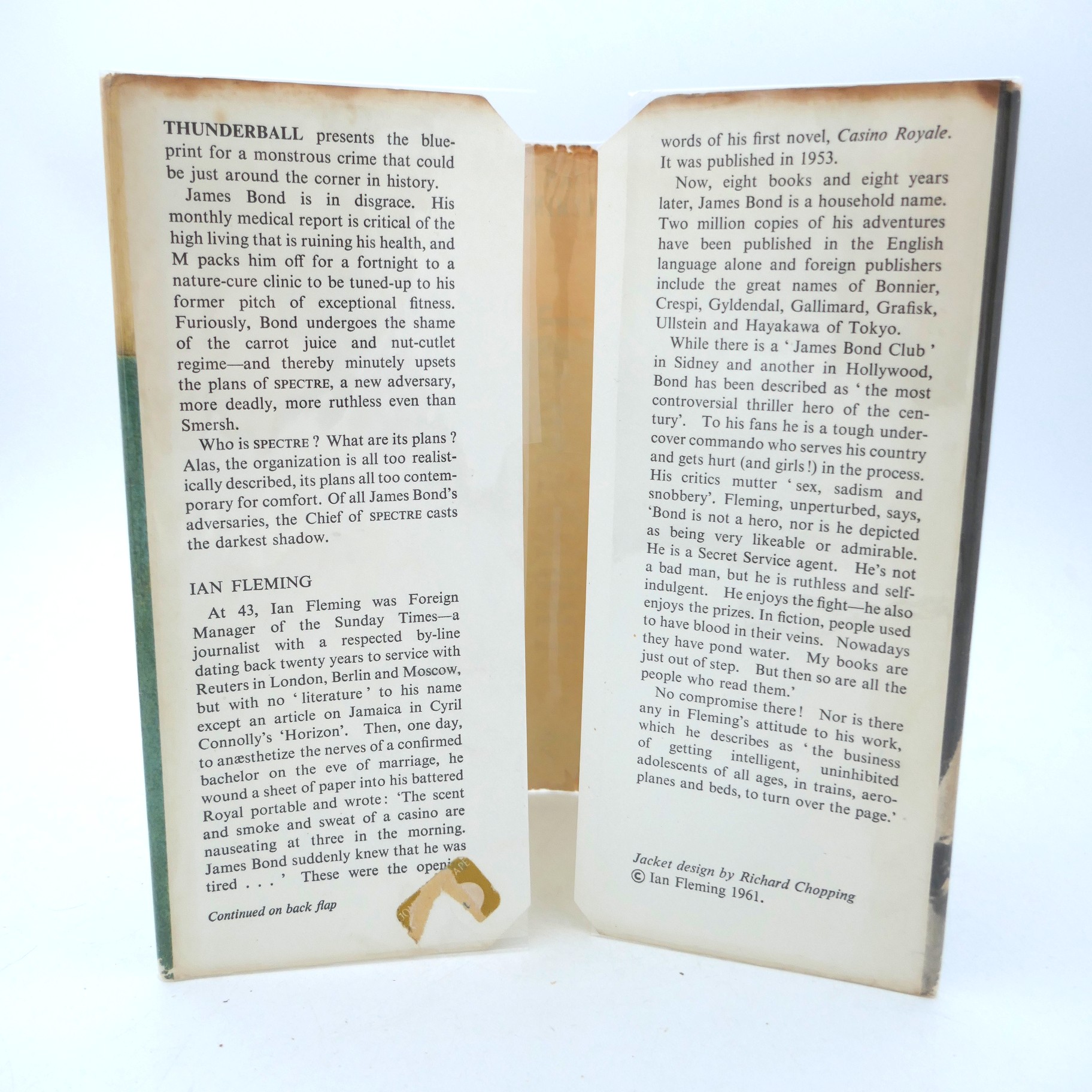 Thunderball. London: Jonathan Cape, 1961. First Edition, First issue (with all first issue points.) Pp, 254. Publisher’s black cloth boards with skeletal hand embossed on front board with gold lettering to spine. in original pictorial dust jacket designed by Richard Chopping. Scuff mark to lower corner of inner flap of jacket, otherwise a nice bright copy.