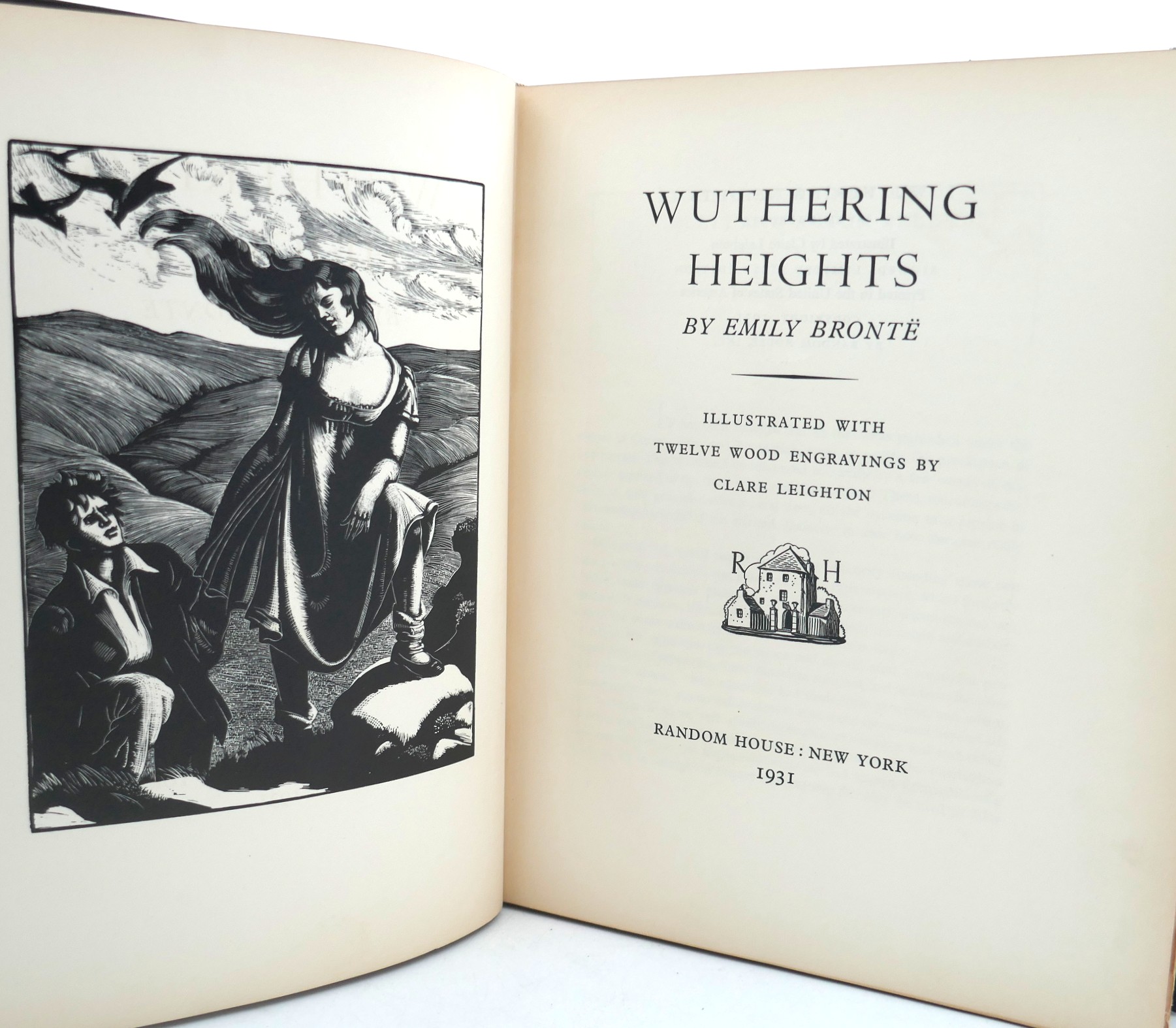 Wuthering Heights. Illustrated with Twelve Wood Engravings by Clare Leighton. New York: Random House, 1931. Folio. Pp xviii, 325. Black cloth boards, title in gilt to spine. The top edge of the text block is gilt; other edges are untrimmed. Covers lightly faded, otherwise a very good copy.