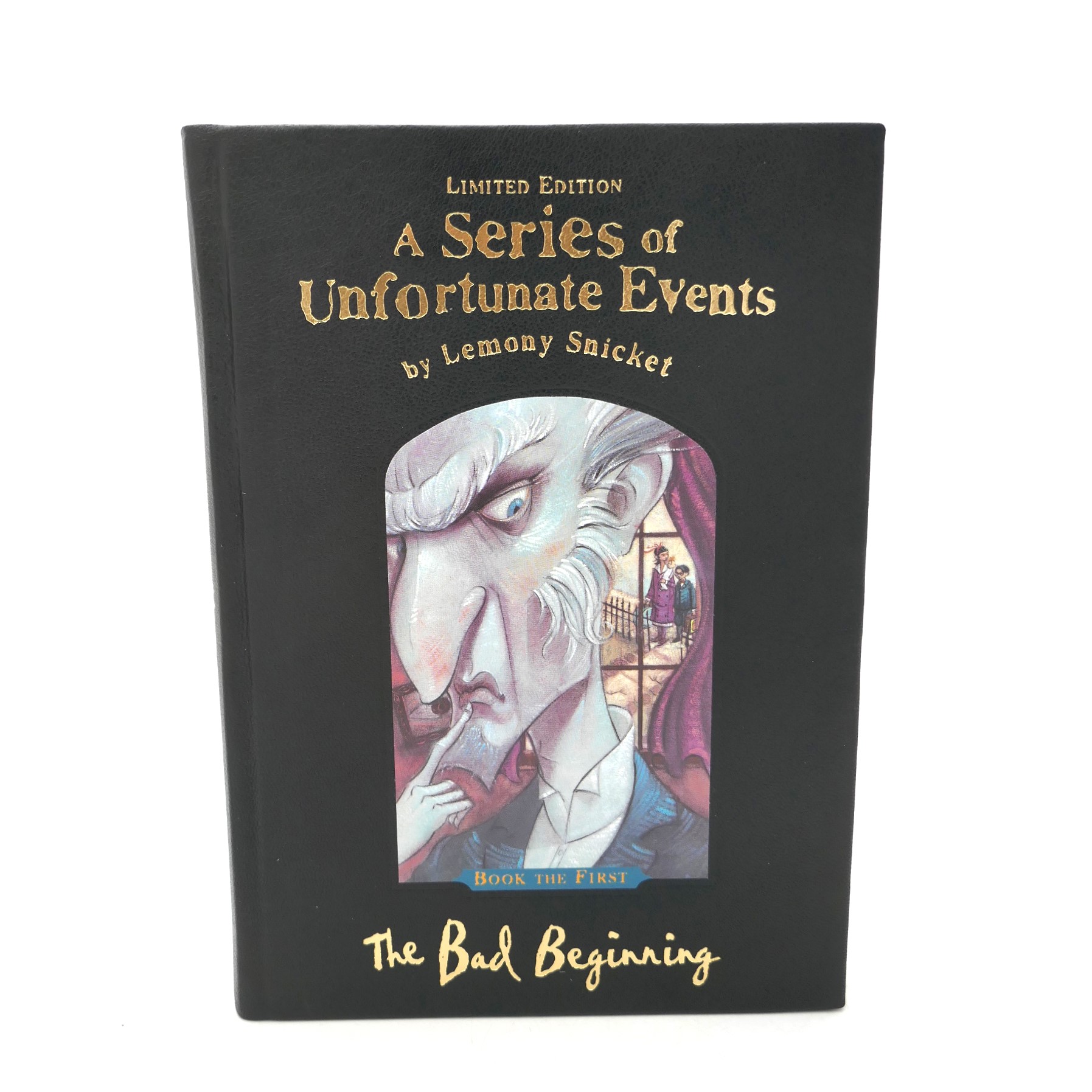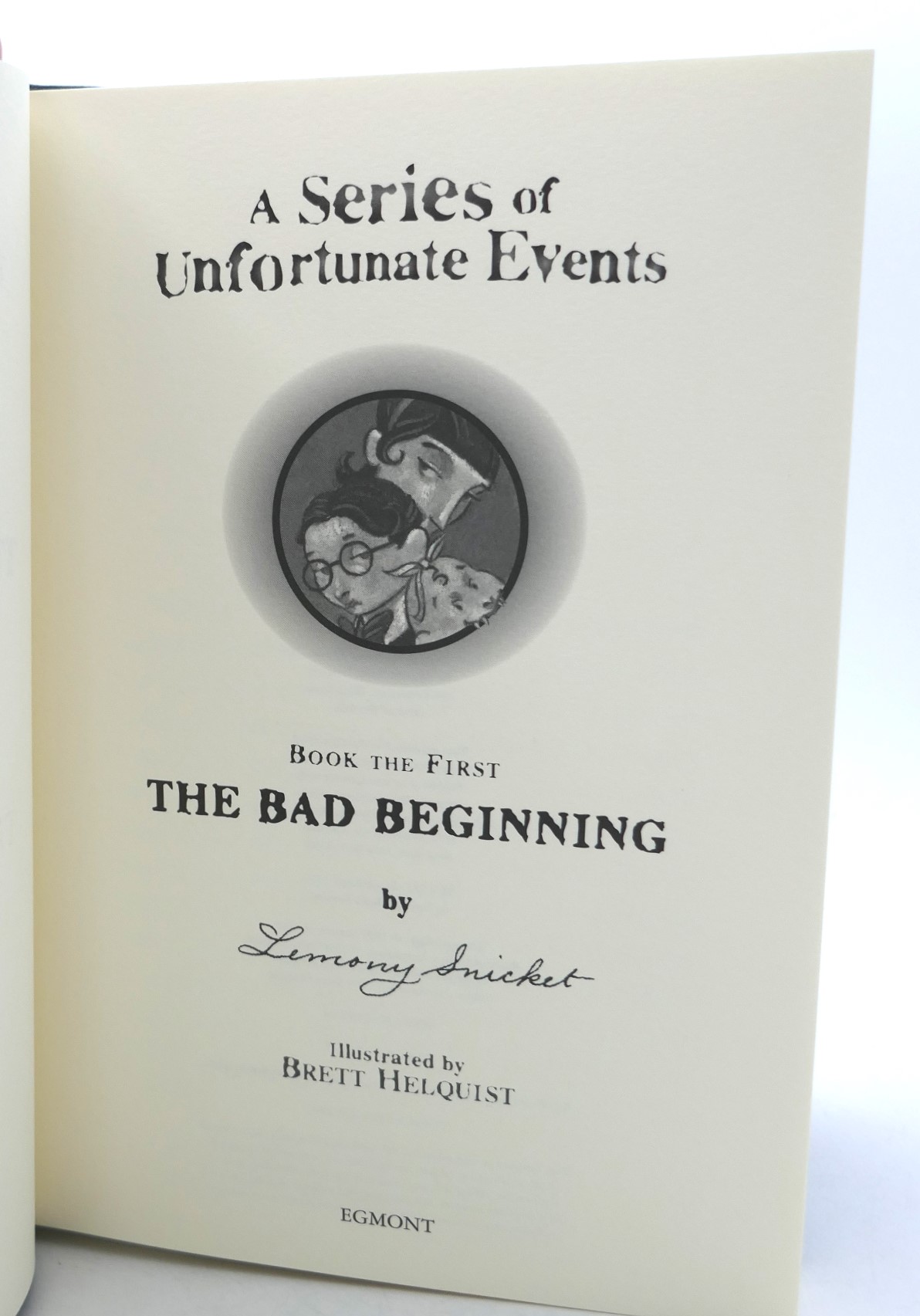 A Series of Unfortunate Events. The Bad Beginning. Illustrated by Bret Hellquist. London: Egmont, 2003. First Edition, Limited Issue. Pp, 160. Black cloth boards, lettered in gilt with pictorial panel to upper cover, housed in publisher’s slipcase. A fine bright copy.