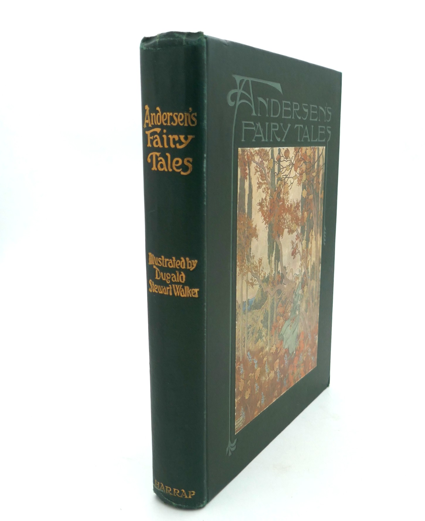 Fairy Tales from Hans Christian Andersen. Illustrated by Dugald Stewart Walker. London: George Harrap, [1914). First Edition Thus. Publisher’s green cloth boards, title lettered in gilt to spine, illustrated panel to upper covers. Neat gift inscription to endpaper, overall a nice bright copy.