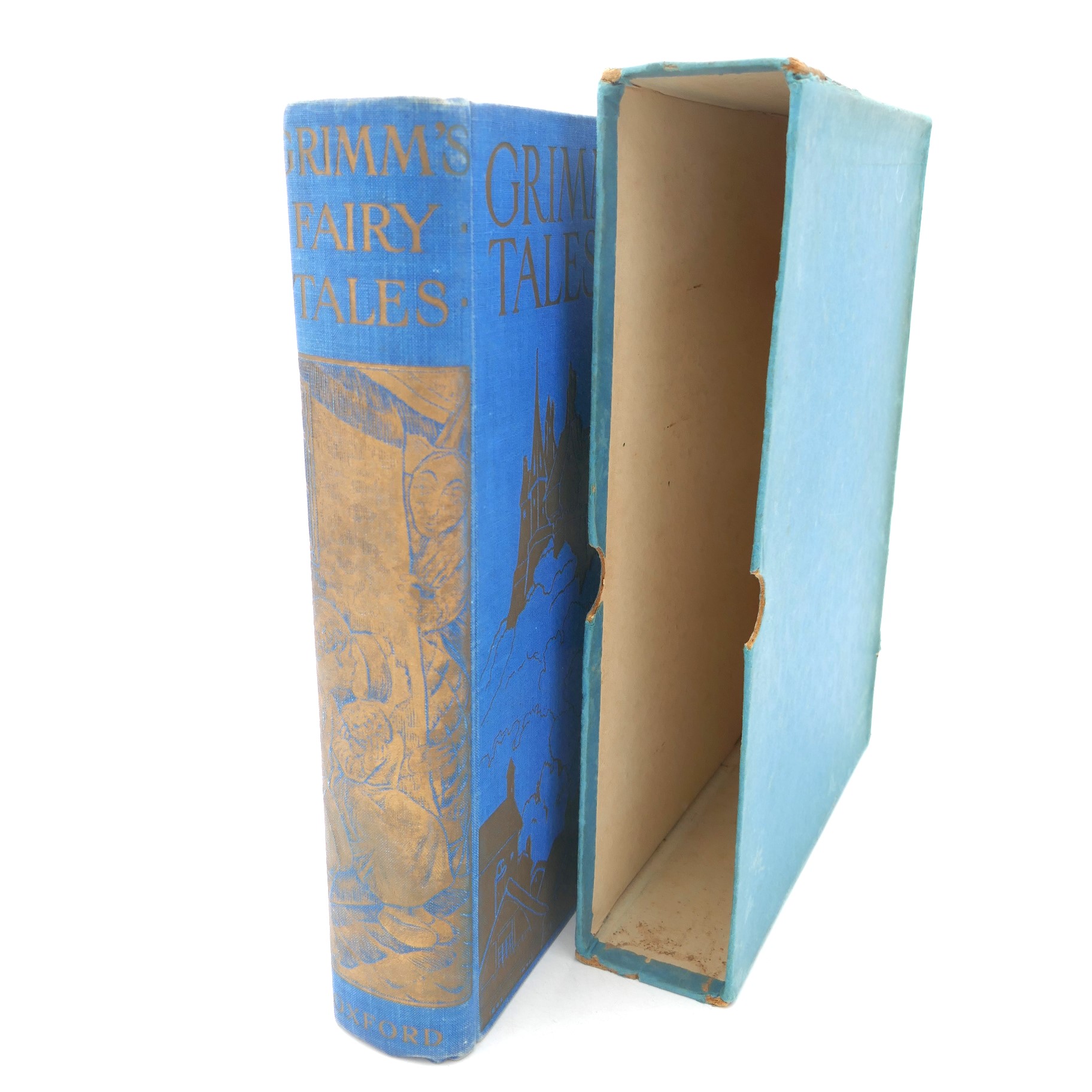 Grimm’s Fairy Tales. London. Oxford University Press,1938. Blue cloth boards, with lettering & illustrations in gilt to upper cover & on spine, in publisher’s plain blue dust jacket; top edge in gilt . Housed in slipcase. Light wear to inner hinge of upper board, otherwise a nice bright copy.