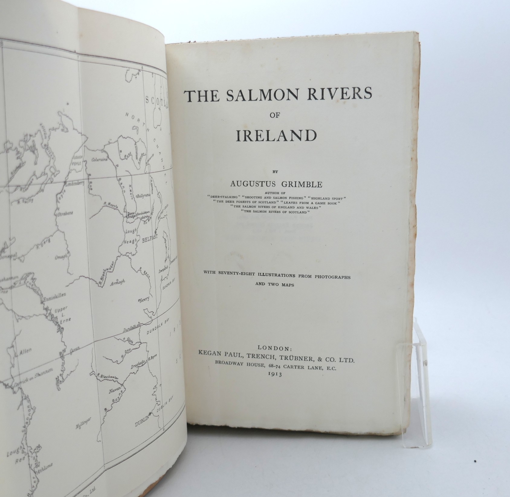 The Salmon Rivers of Ireland. With Seventy-Eight Illustrations from Photographs and Two Maps. London: Trench, 1913. Second Edition, Revised. Pp [16], 296. Printed on hand-made paper, uncut, and bound in vellum-backed paper-covered boards with printed paper title-label on the spine, contents in fine bright condition.