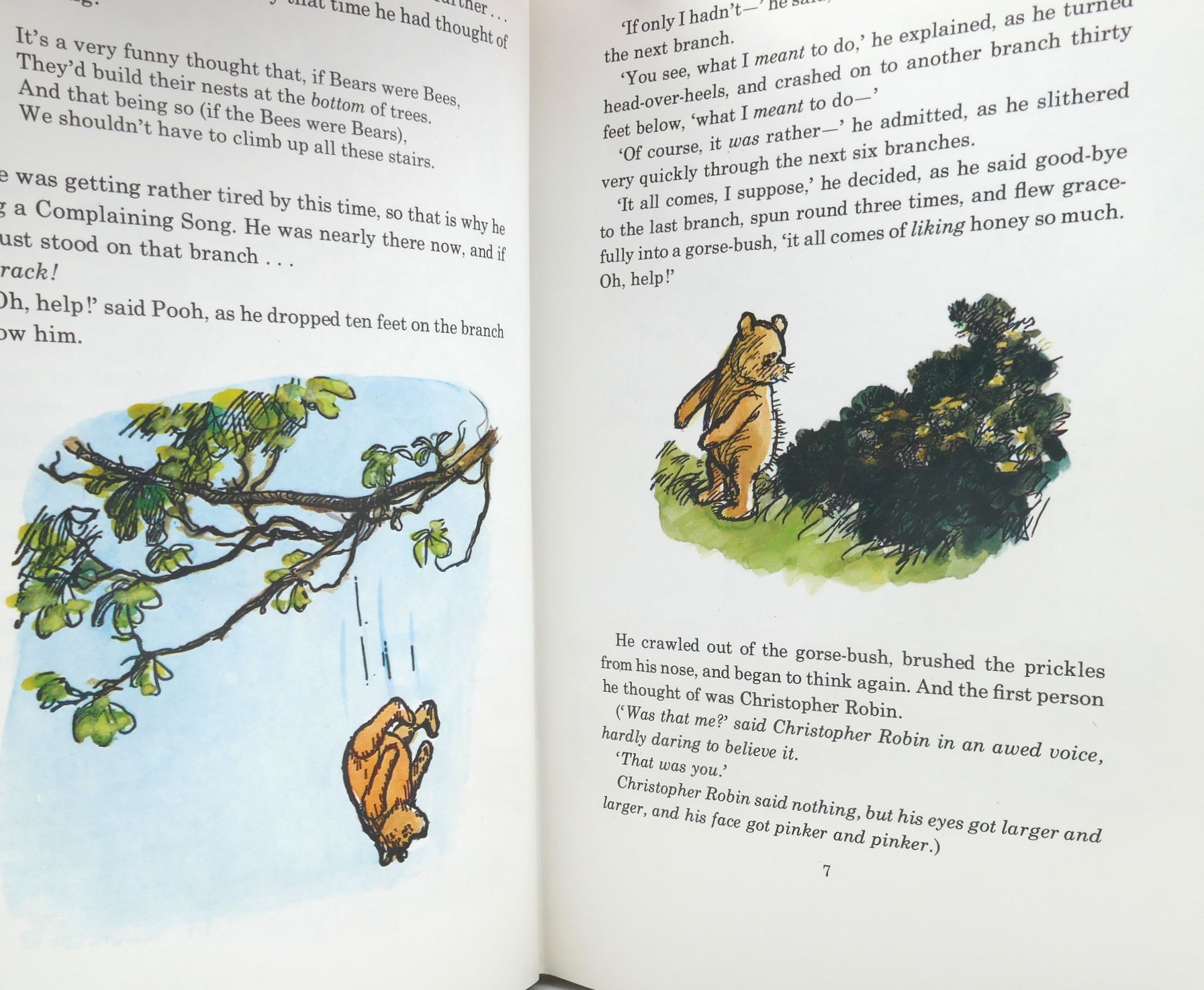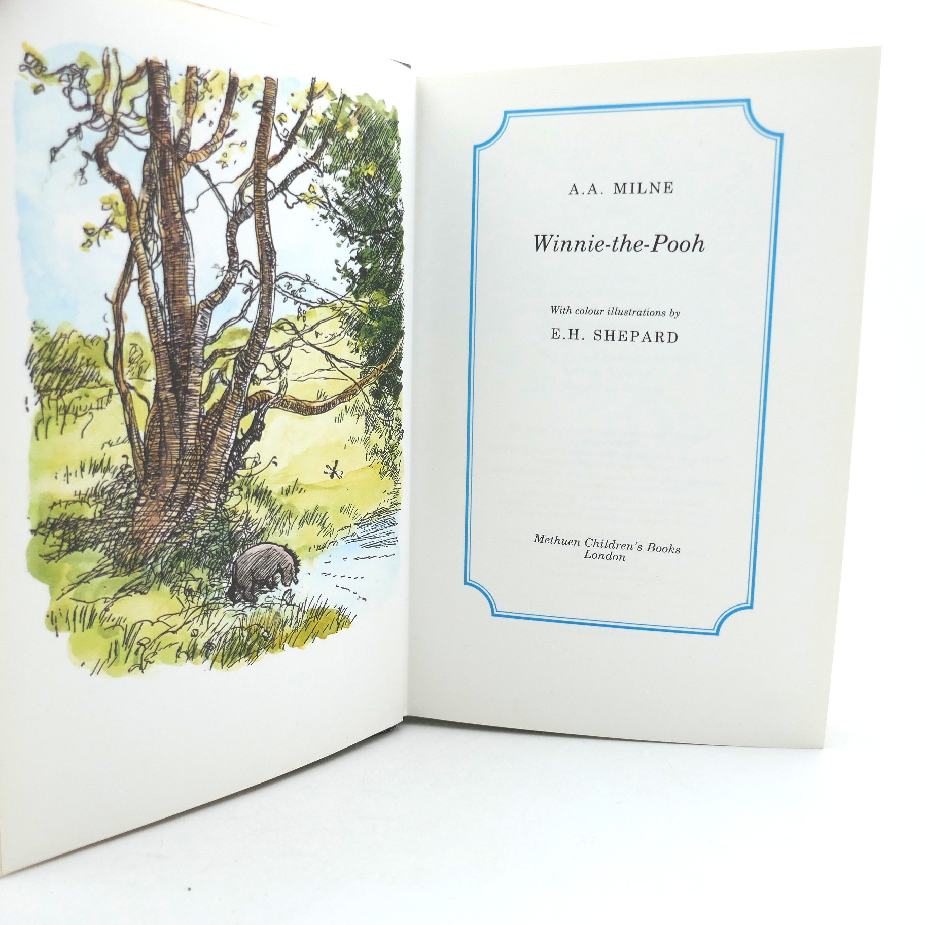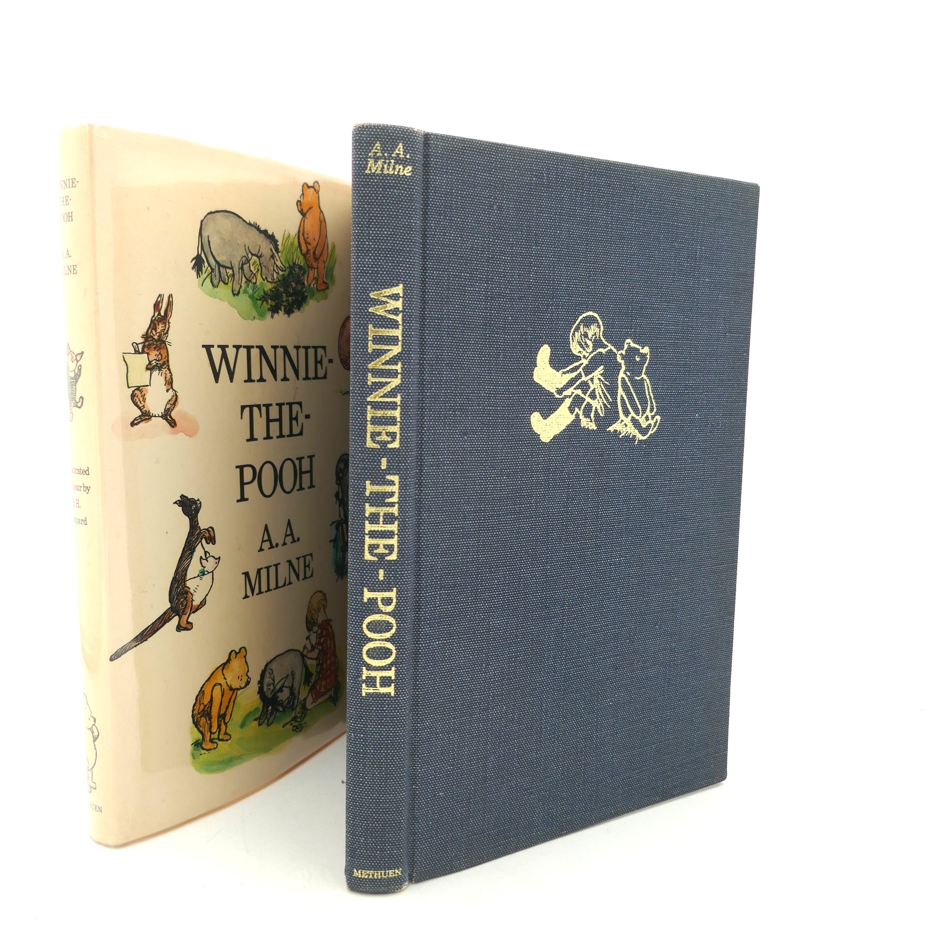 Winnie the Pooh. With Colour Illustrations by Ernest H. Shepard. London: Methuen Children’s Books, 1973. First Edition Thus. Publisher’s blue cloth boards pictorially blocked in gilt, pictorial dust-jacket, colour map endpapers depicting ‘Hundred Acre Wood.’ A nice bright copy.