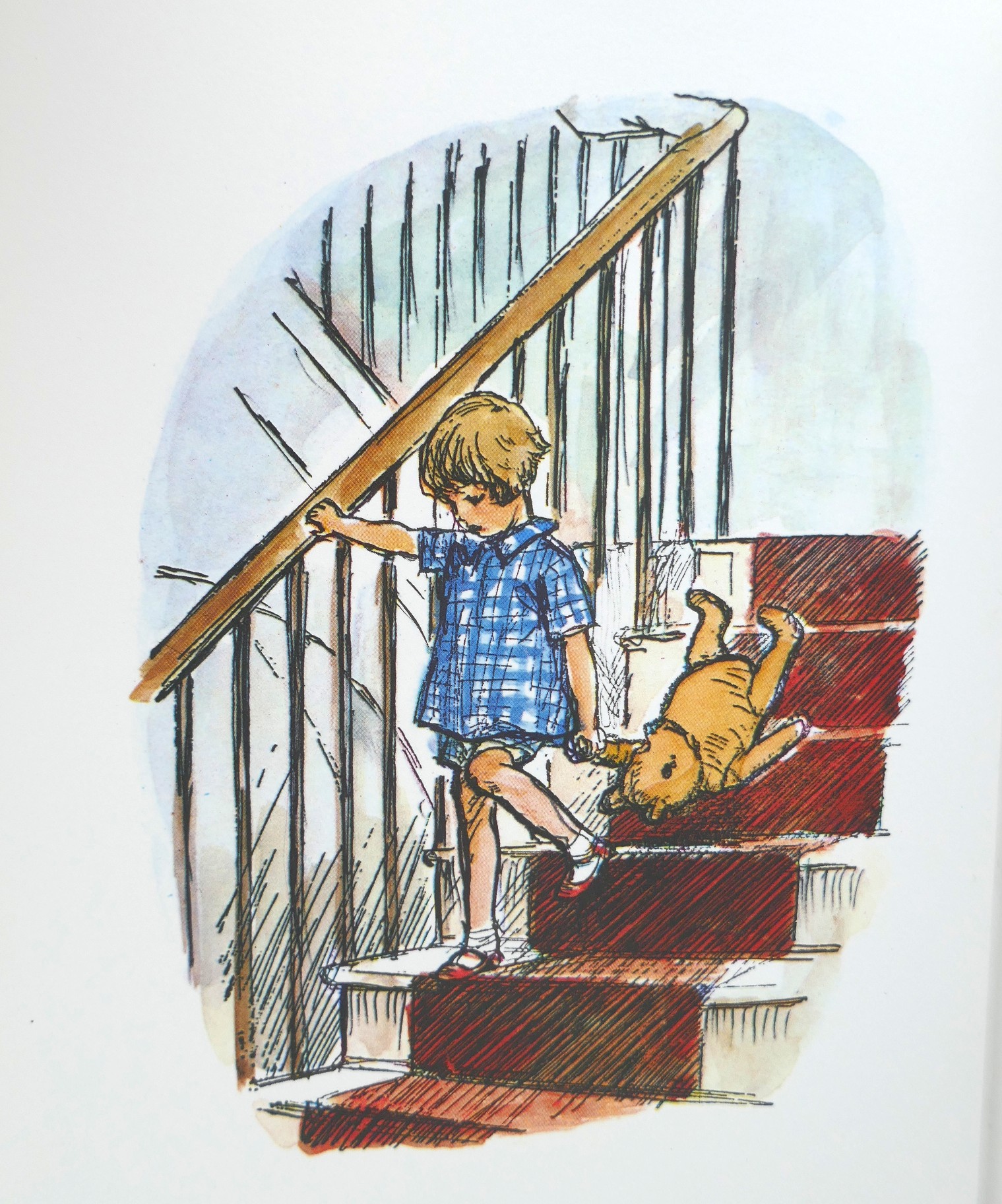 Milne’s classic tale of the adventures in the forest of Christophe Robin’s teddy bear & his companions of the nursery, the old grey donkey Ee-yore, Kanga and Baby Roo, Owl & Rabbit. Delightfully illustrated by Ernest H. Shepard.