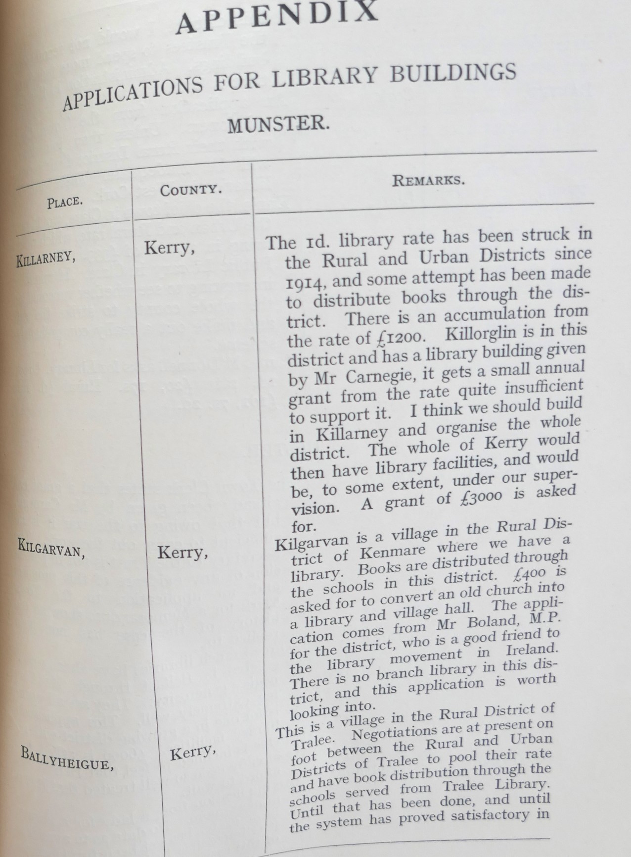 Their observations give a fascinating and humorous insight into the social standing of public libraries in the Ireland of the early 1900s and are of much value from a socio-historic point of view. They give a glimpse of a pre-industrial Ireland, a country very much rooted in an old rural way of life, suffering quietly from the ravages inflicted by war and poverty yet poised to become a new republic with all its attendant opportunities and problems. [Irish Rural Libraries: Glimpses of the Past: Mícheál Ó hAodha]