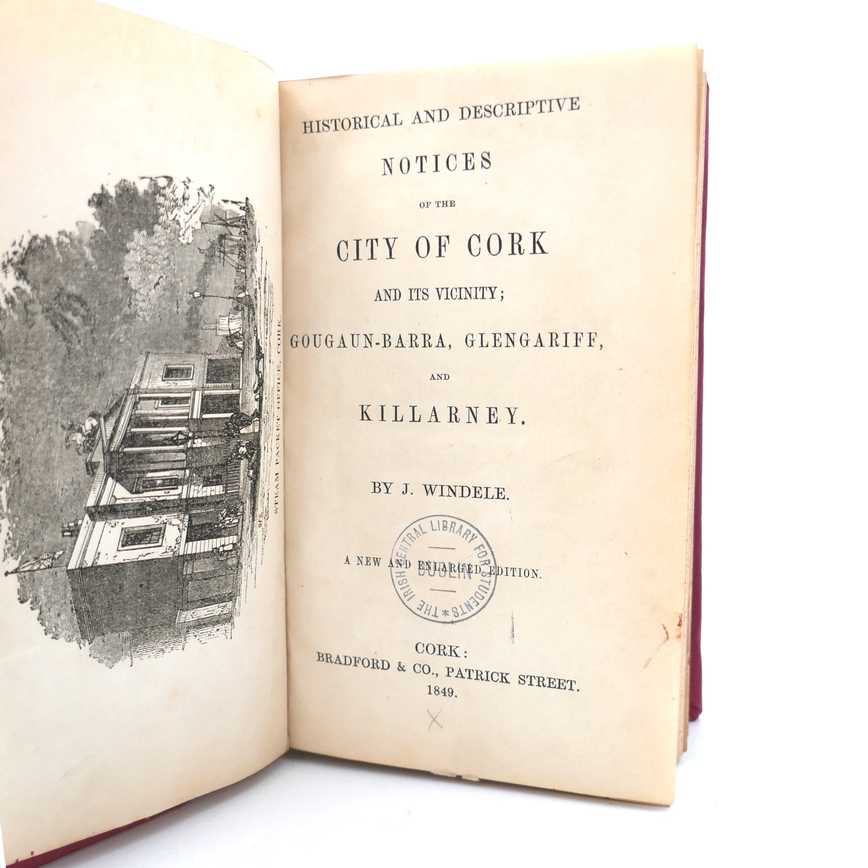 Historical & Descriptive Notices of the City of Cork and its Vicinity. Gougaun Barra, Glengariff and Killarney. Cork: Bradford, 1849. A New & Enlarged Edition. Pp viii, 466. Ex library copy, with stamps. Rebound in half morocco, cloth boards. A very good copy.