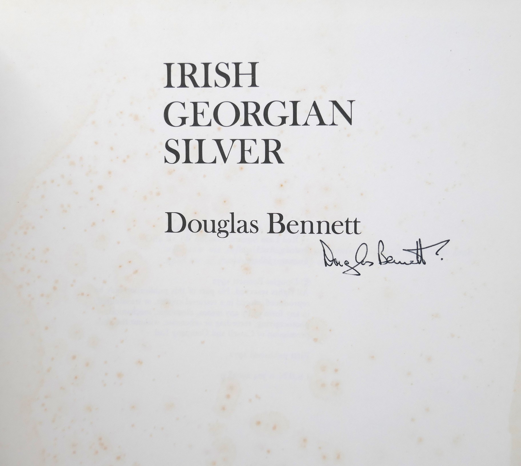 Irish Georgian Silver. London: Cassell, 1972. First Edition. Folio. Pp xiv, 369. Illustrated throughout. Navy cloth boards, in publisher’s dust jacket. Shelf-wear to jacket with small perforation to upper cover, foxing to half-title & title page, otherwise a nice bright copy.
