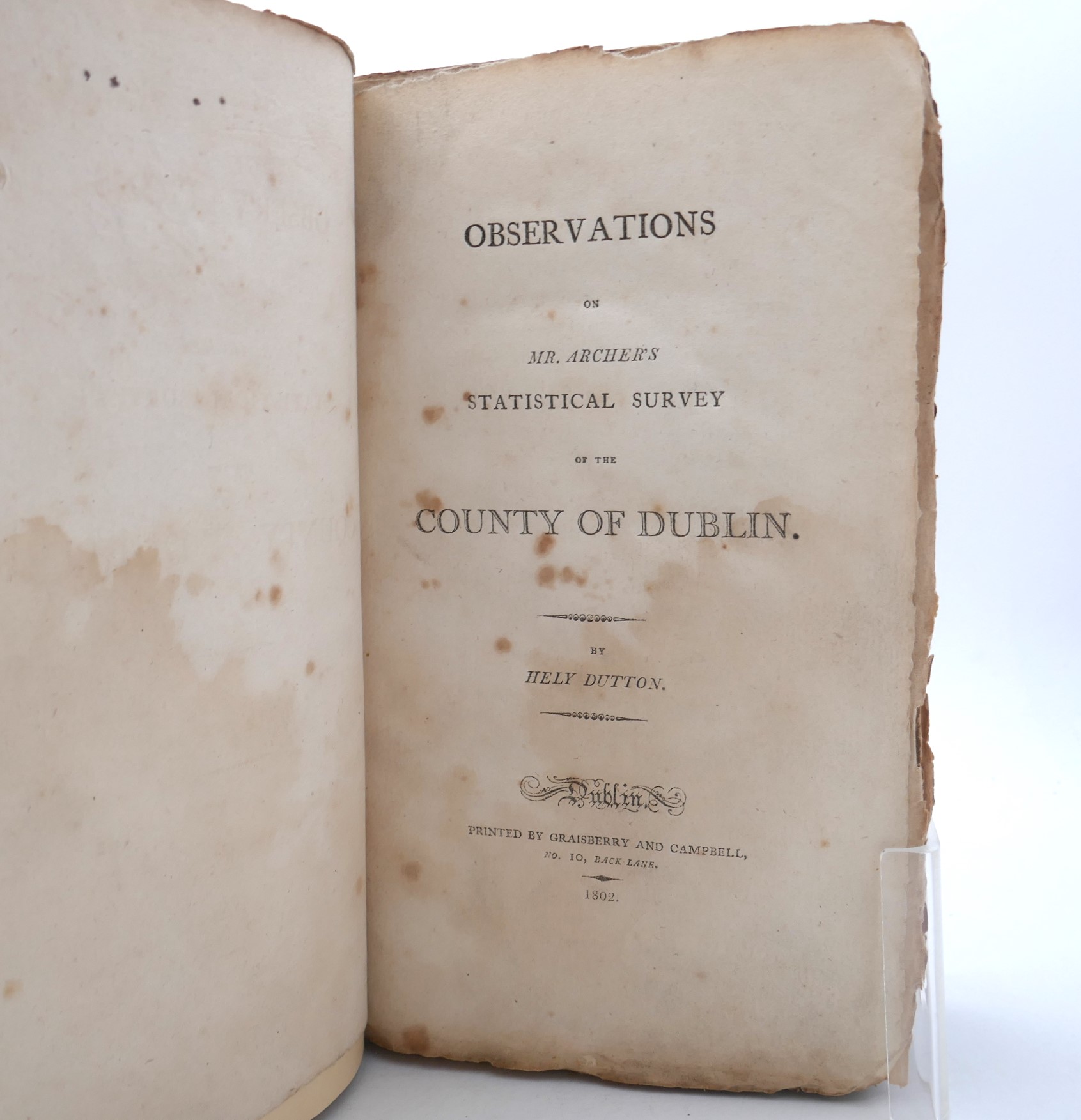 ‘Observations On Mr. Archer’s Statistical Survey Of The County Dublin’ by Hely Dutton was published the following year was critical of Archer’s original survey.