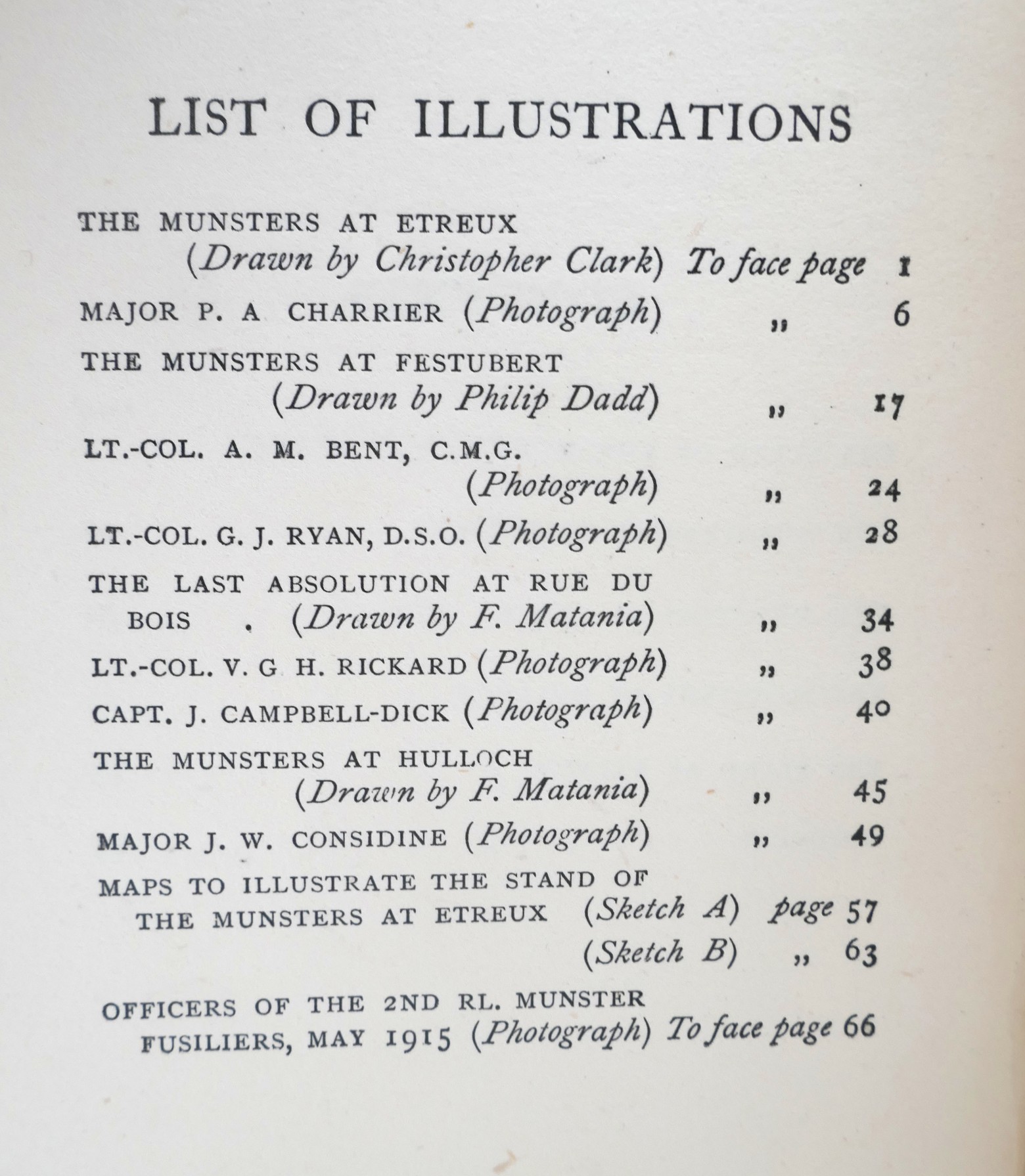 Illustrated with twelve plates. Dedicated to Victor Rickard and his Comrades in all ranks of the Munster Fusiliers, who fought and fell in the Great War, 1914-15.