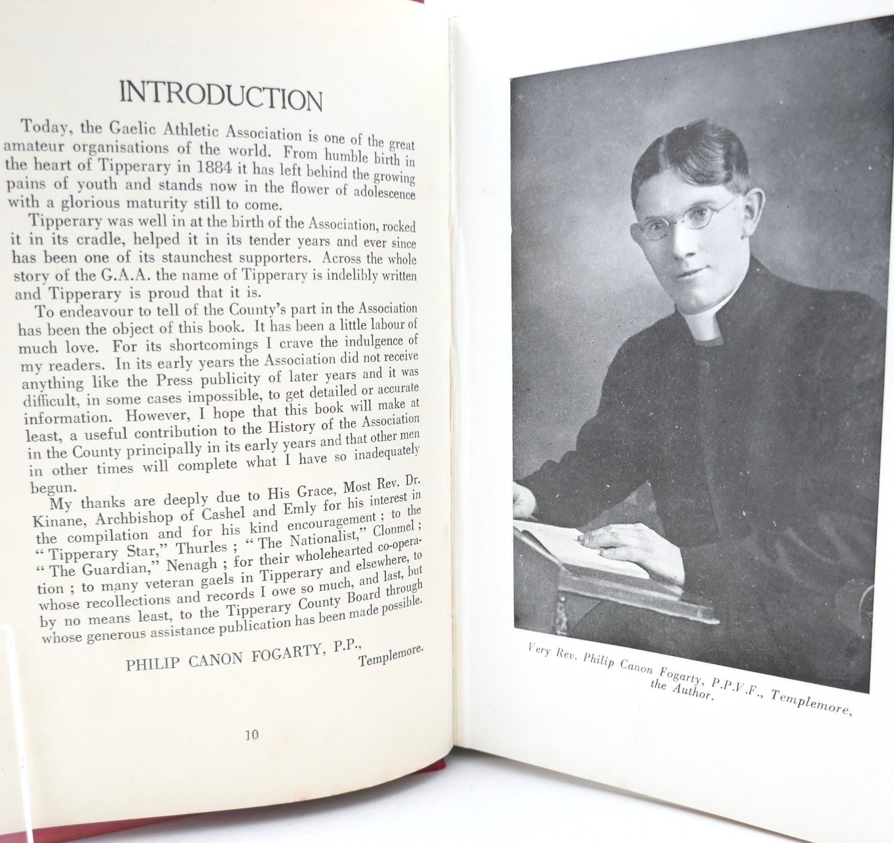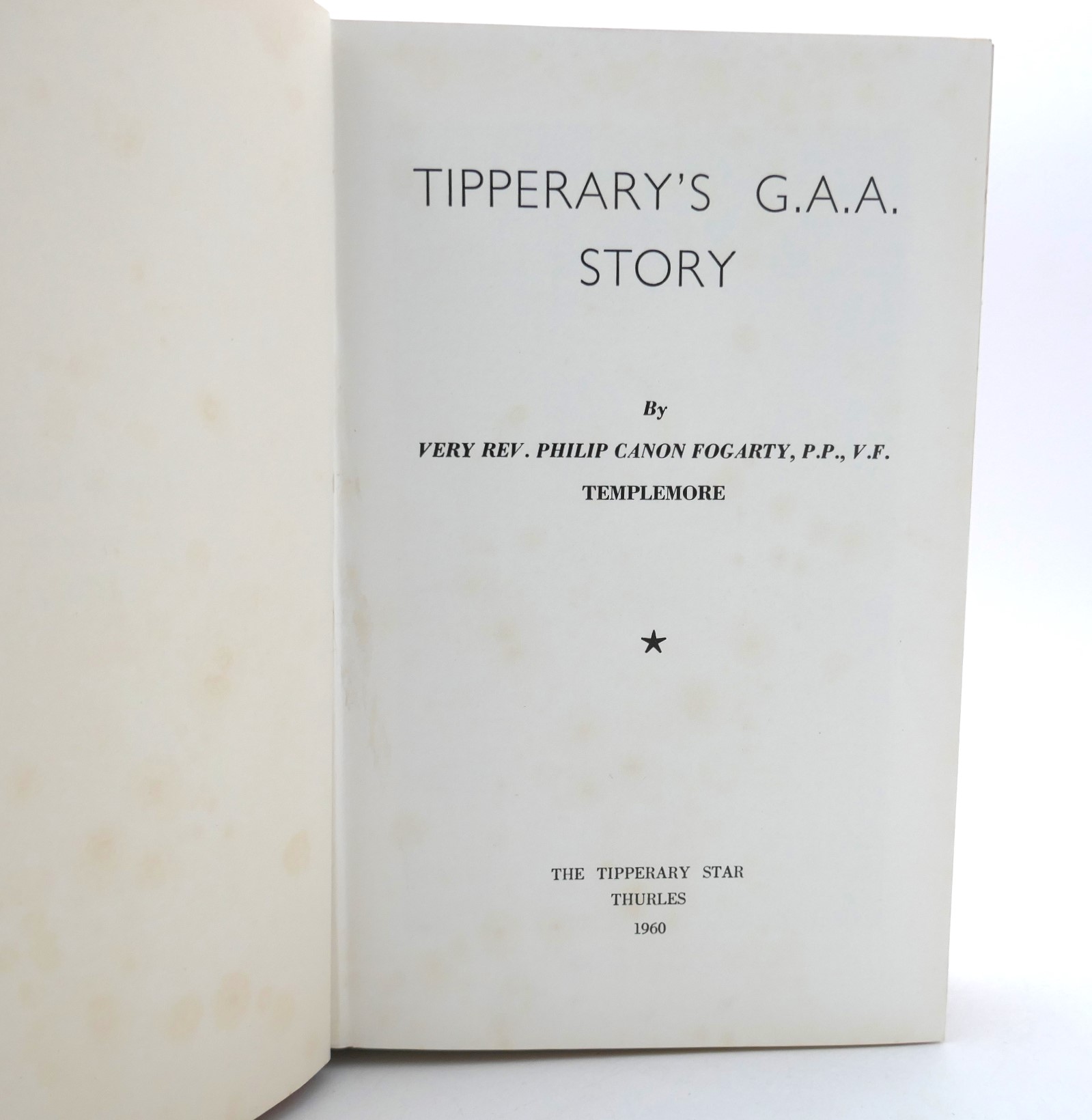 Tipperary’s G.A.A. Story. Thurles: Tipperary Star, 1960. First Edition. Pp 380. Illustrated. Maroon cloth boards, in dust jacket printed in black. A nice bright copy.