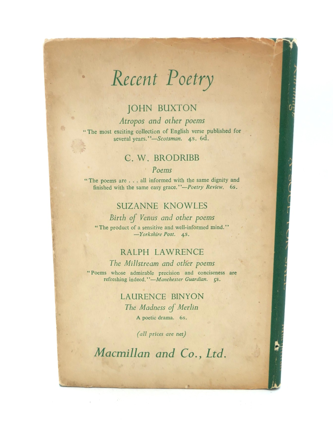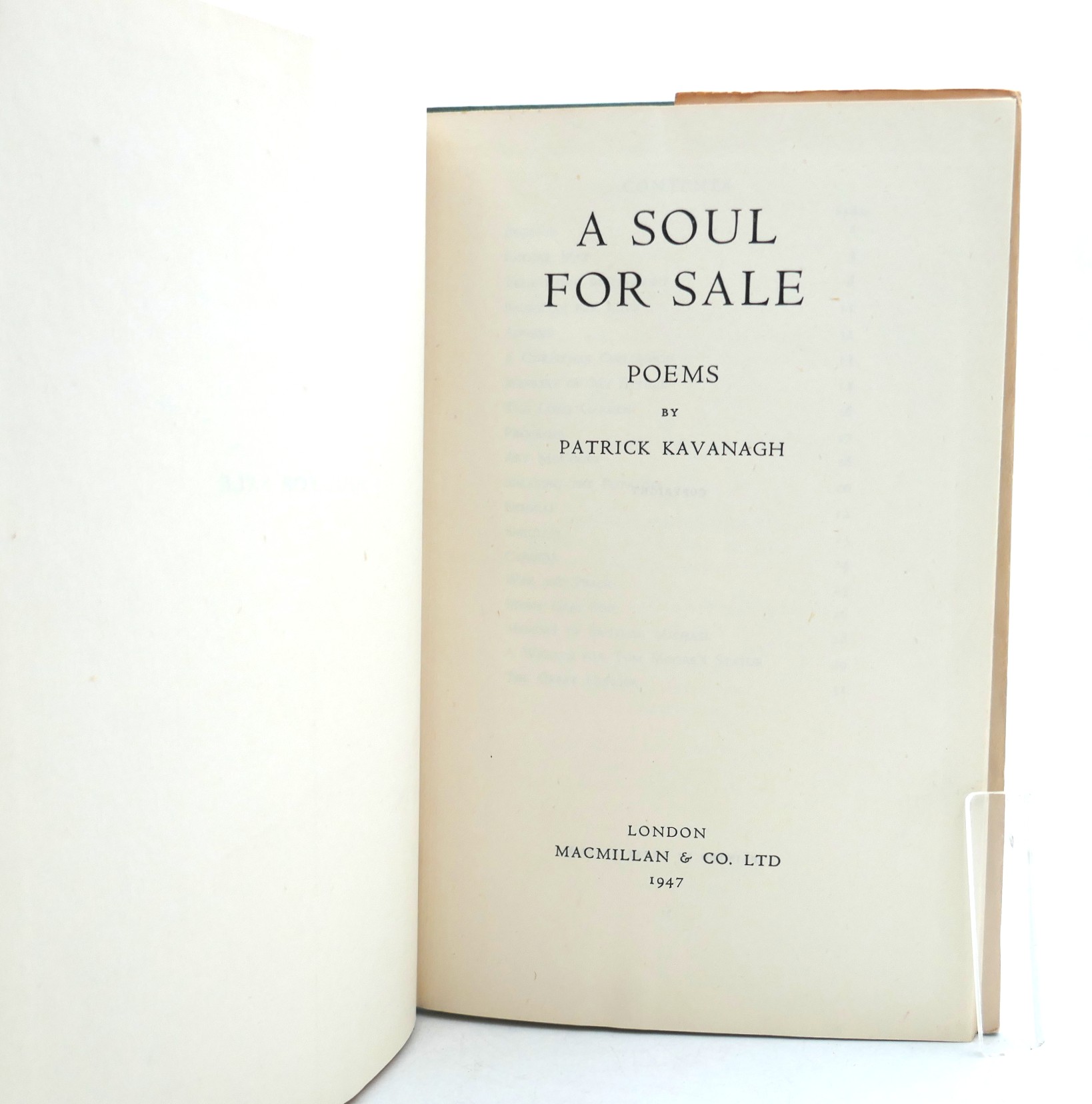 A Soul for Sale. Poems. London: Macmillan, 1947. First Edition. Pp, 54. Green cloth, title in gilt to spine, in green dust jacket printed in white. Shelf-wear to jacket & chipped along top edge, book in fine bright condition.