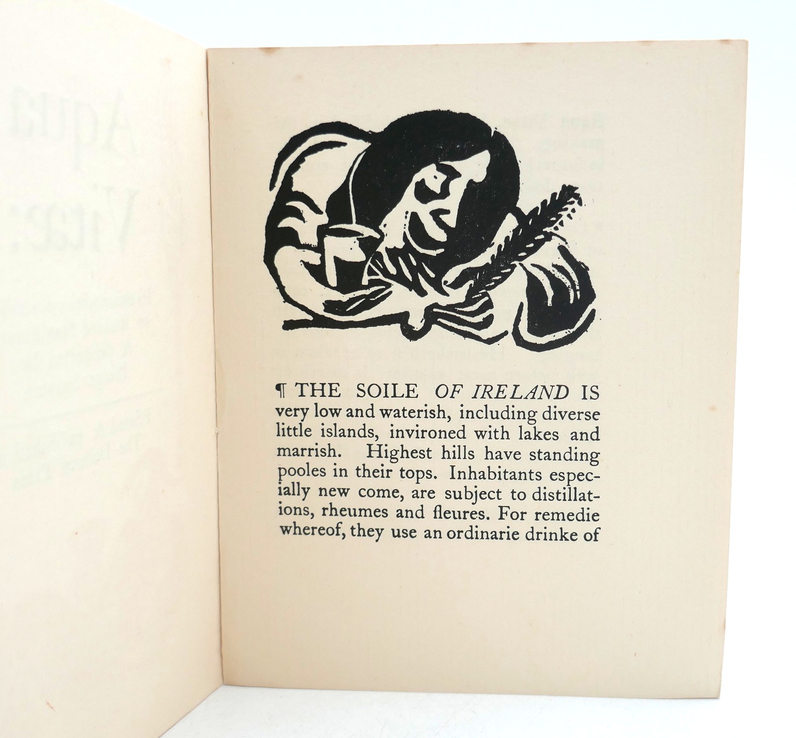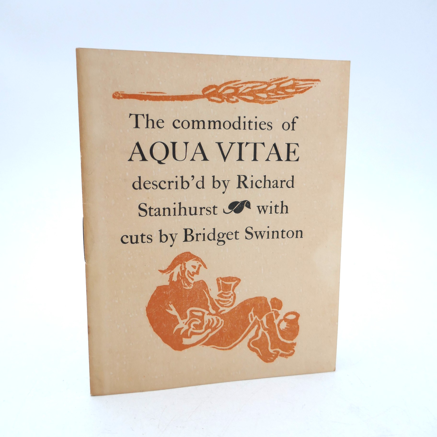Aqua Vitae. It’s Commodities describ’d by Richard Stanihurst and delineated by Bridget Swinton. The text edited by Lawrence Ryan from the edition of 1586 & printed at the Dolmen Press in 1954 is here reset and reprinted. June 1956. Original sewn wrappers printed in orange and black. A nice bright copy.