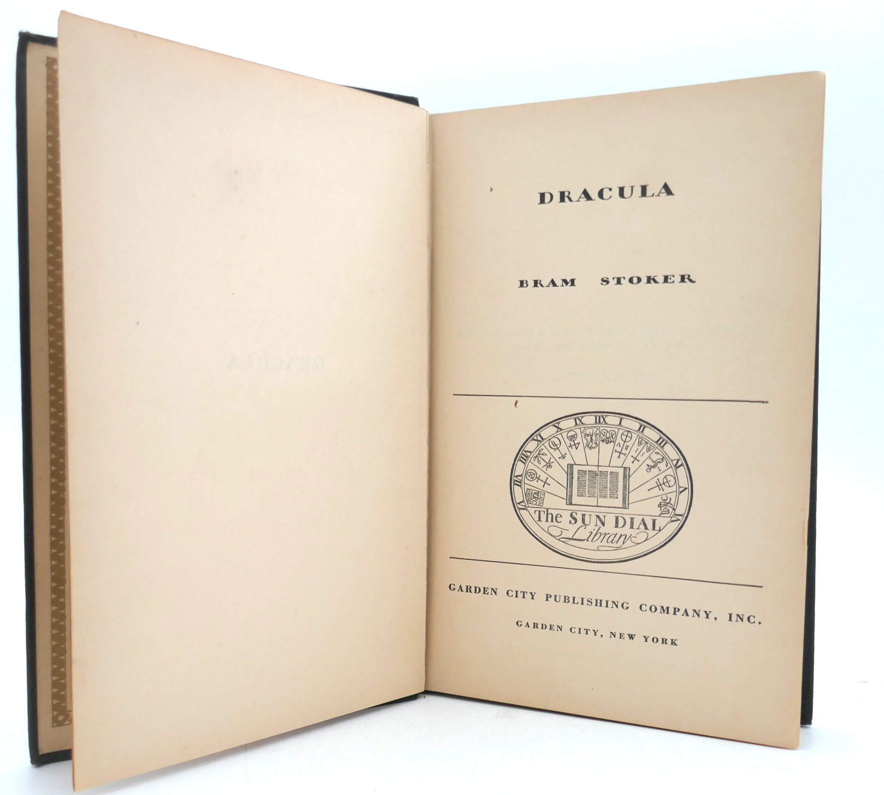 Dracula. New York: Published by The Sun Dial Library, 1926. First Thus. Publisher’s black cloth boards, with floral decoration to upper cover, pictorial endpapers. A nice bright copy.
