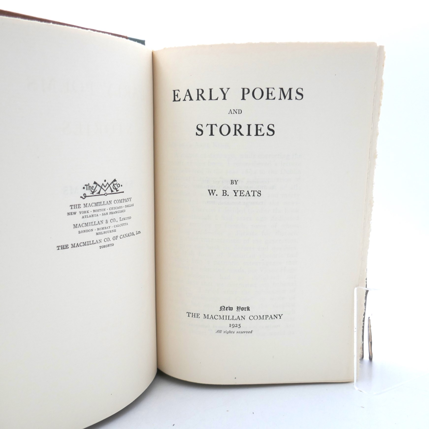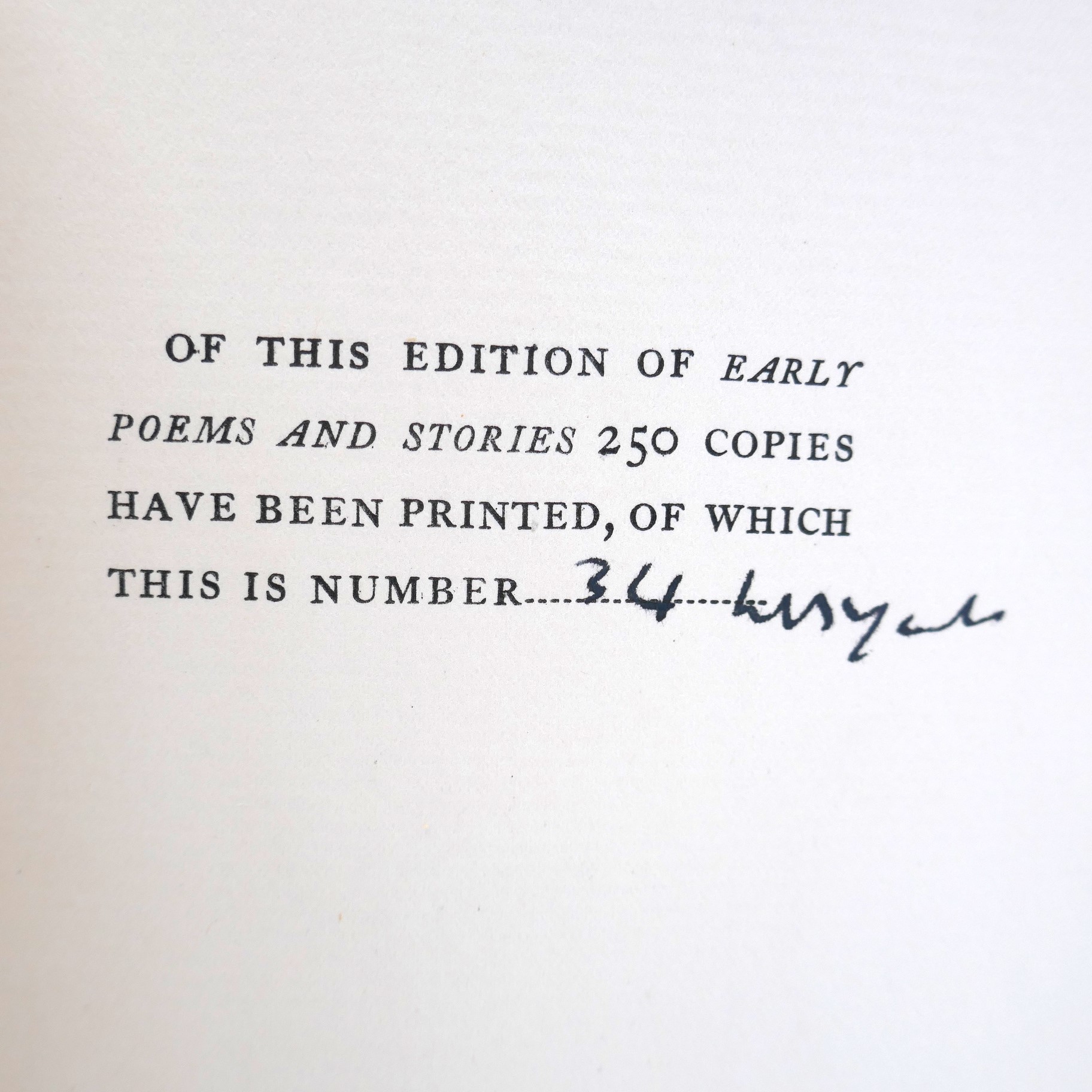 Early Poems and Stories. The Macmillan Company, 1925. First Edition, Limited Issue. Pp x, 528, all edges uncut & unopened along top-edge. Publisher’s brown paper boards, blue cloth spine, title label to upper cover and on spine, all edges uncut. A fine bright copy.
