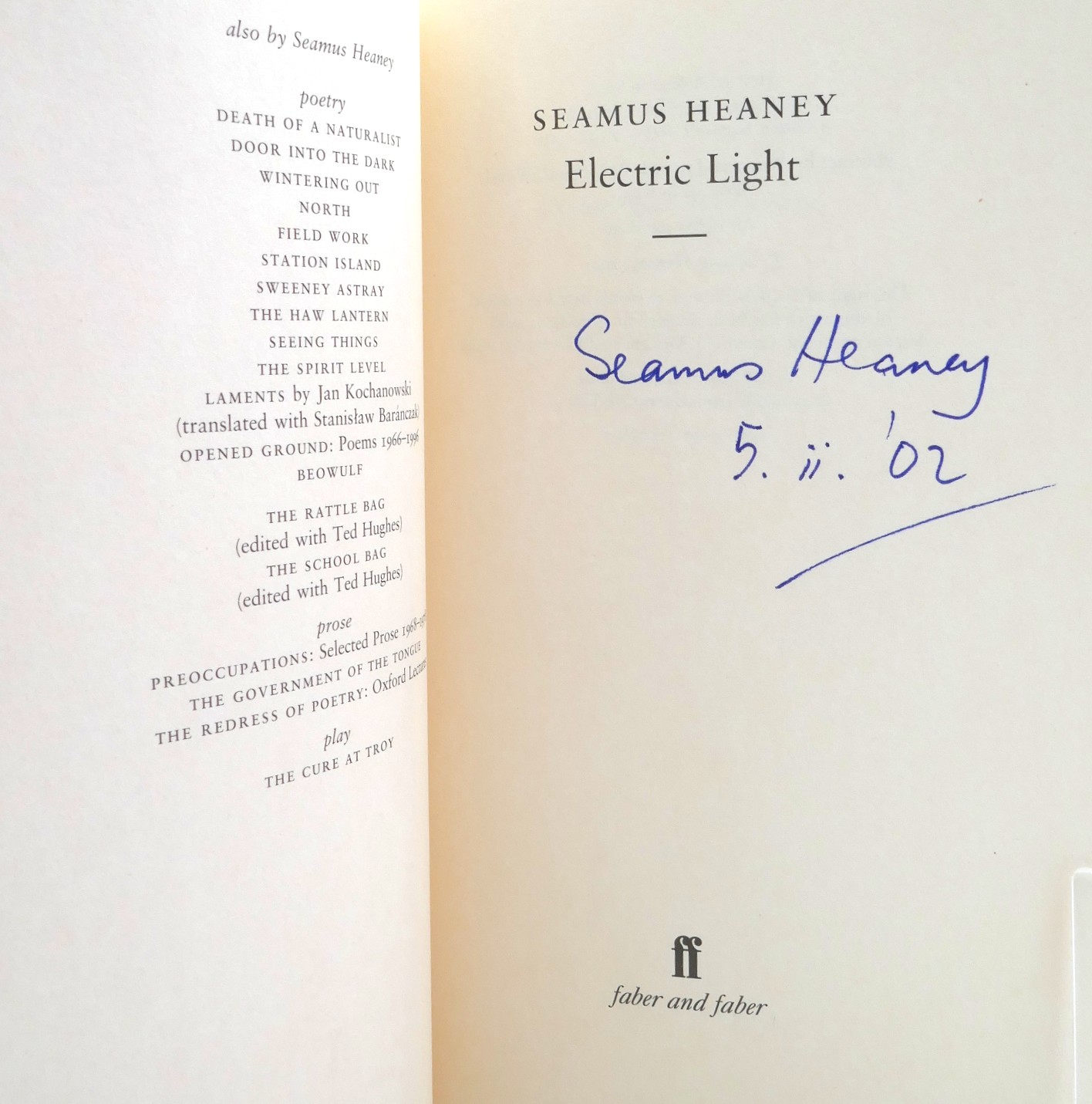 Signed & Dated by Seamus Heaney on the title page.