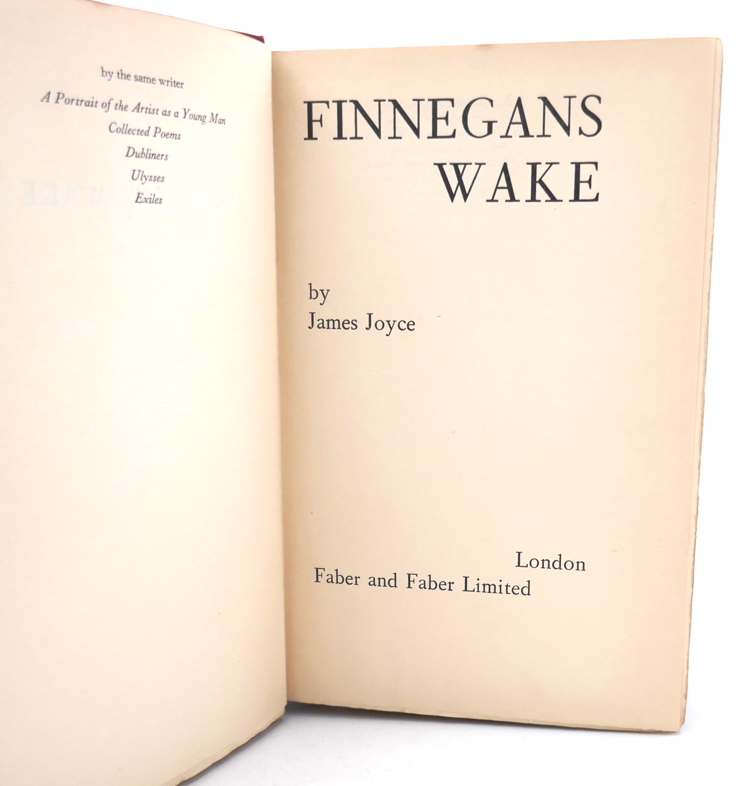 Finnegans Wake. London: Faber, 1939. First Edition. Pp, 628, uncut. Large 8vo. Maroon cloth, titled in gilt on spine; usual off-setting to endpapers. A nice bright copy, without publisher’s dust jacket.