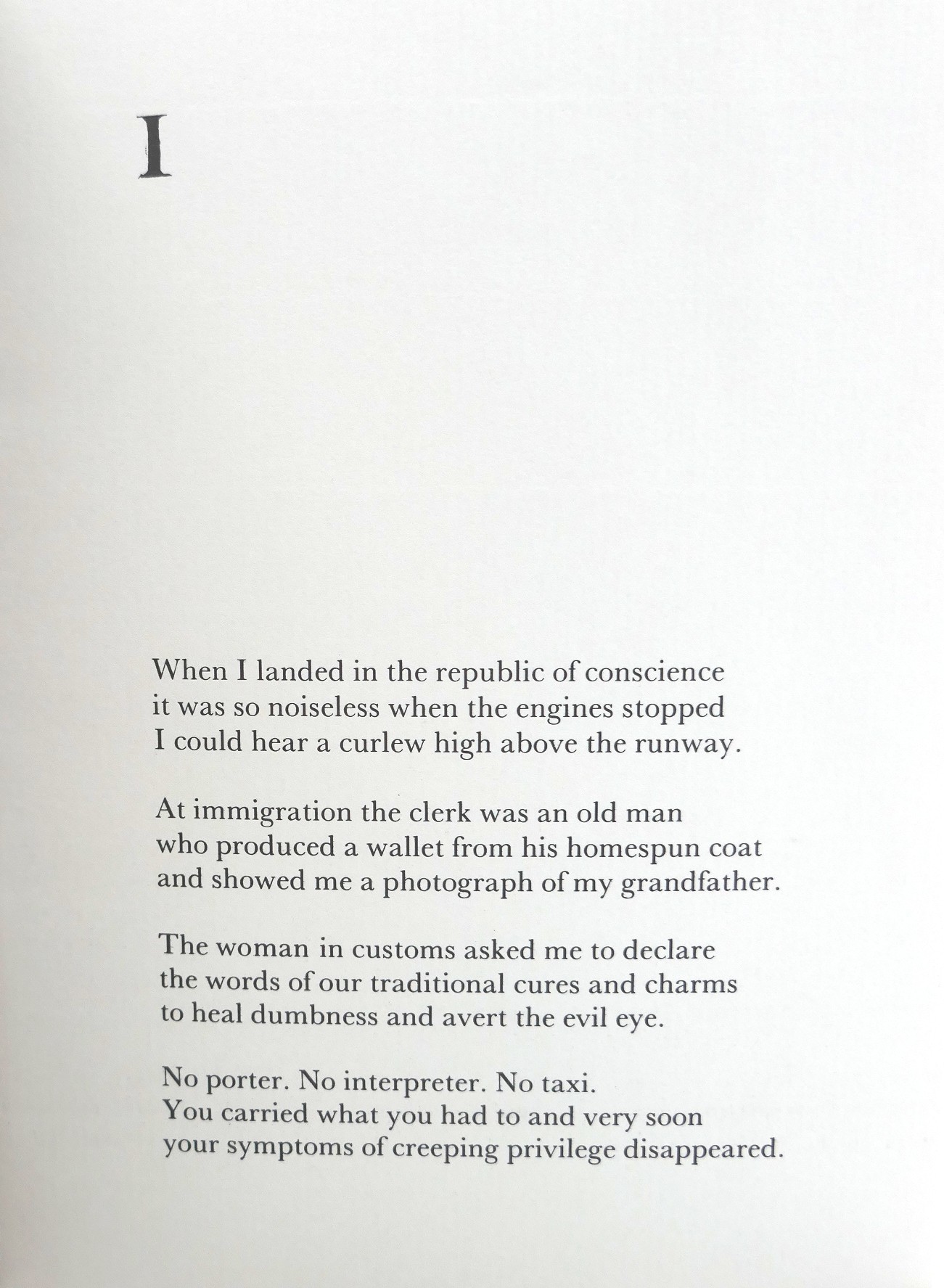 Written in response to an invitation from Amnesty International, and produced by Peter Fallon for Amnesty International Ireland. This edition consisted of a single printing of 2000 copies, published on Human Rights Day, 10 December, 1985.