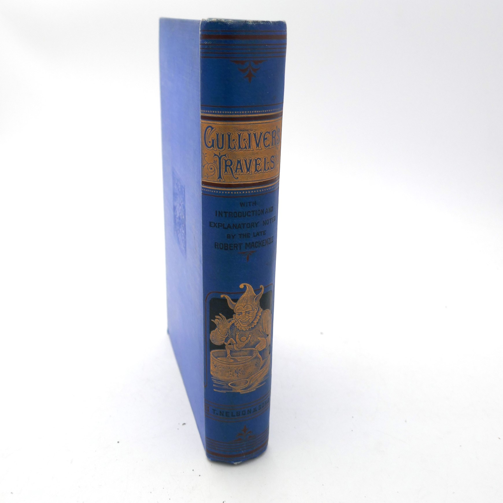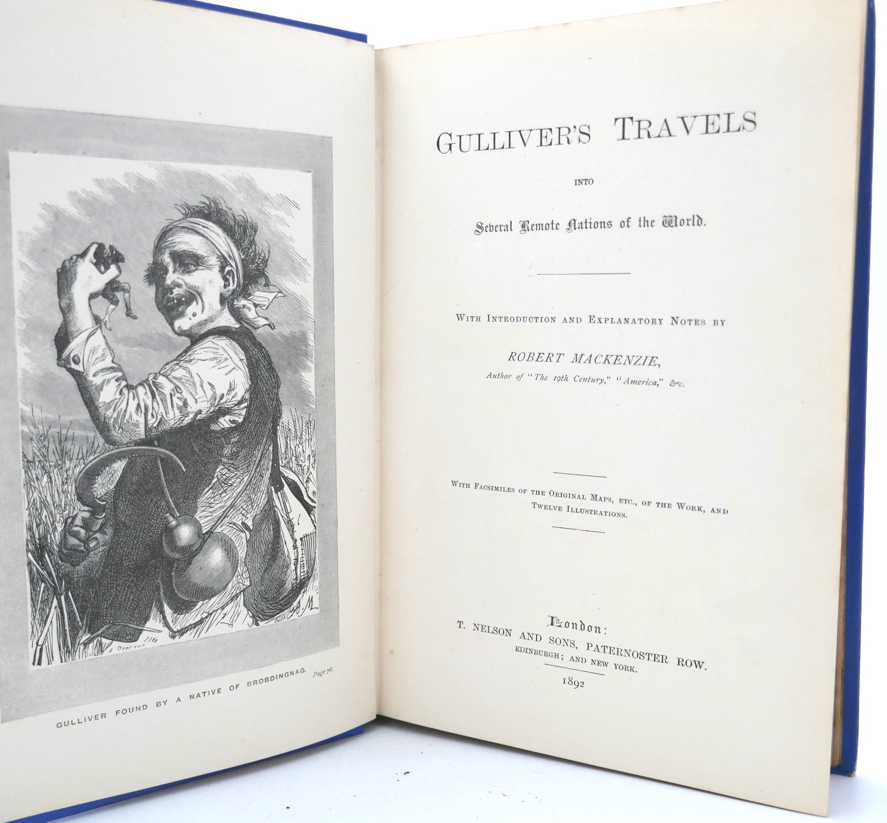 Gulliver’s Travels Into Several Remote Nations of the World. With Introduction and Explanatory Notes By Robert MacKenzie. London: T. Nelson and Sons, 1892. Pp xiv, 316, [adverts]. Publishers blue pictorial cloth boards, lettered in gilt. A fine bright copy.