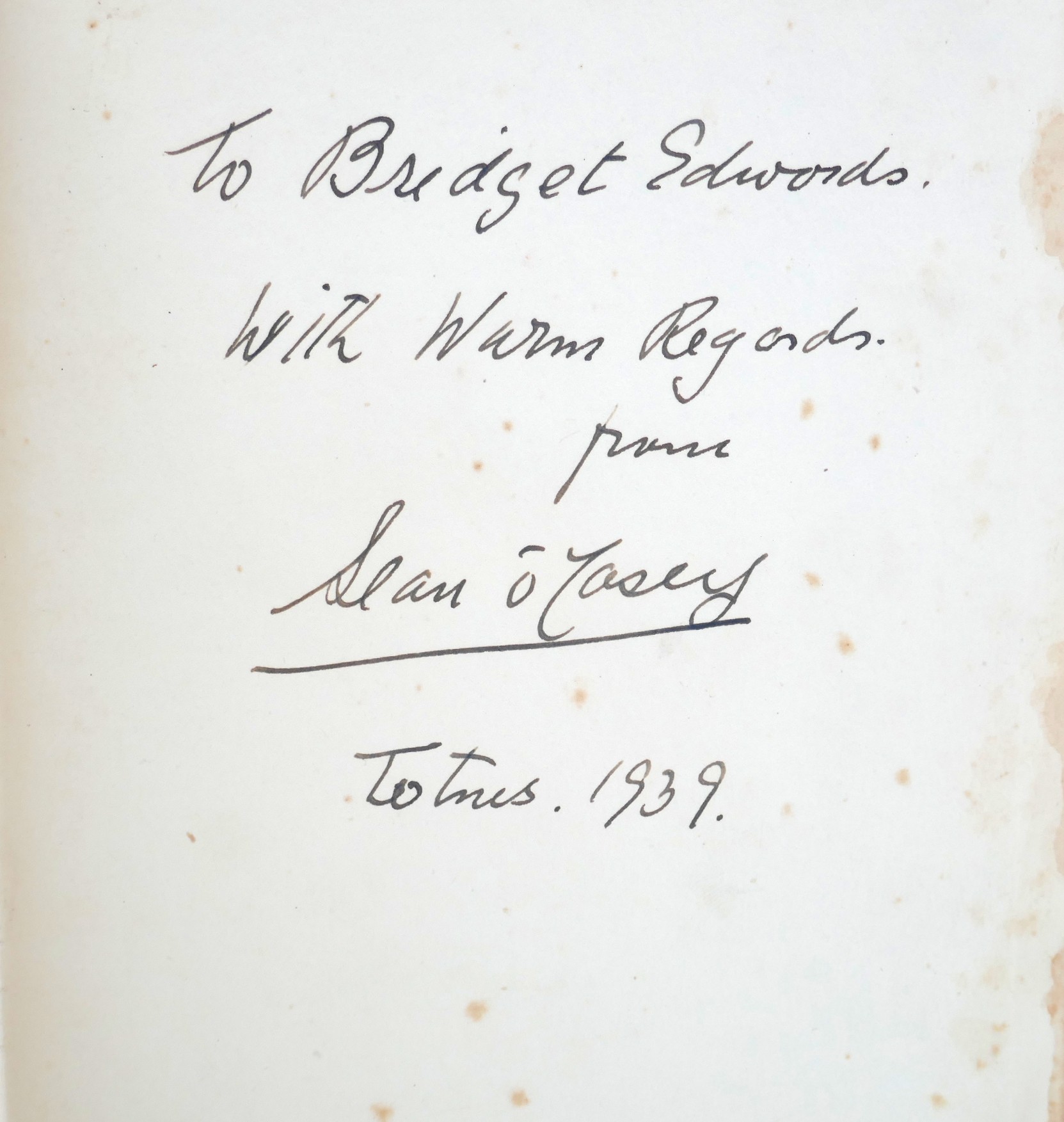 Presentation copy, Inscribed by O’Casey in the year of publication.