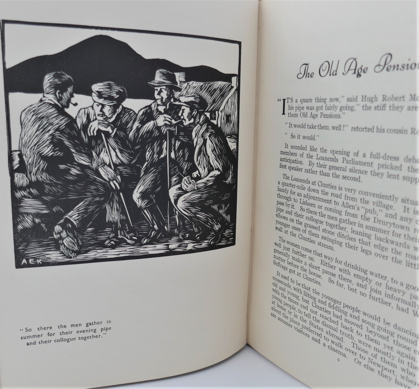 Loan-Ends. Stories in Ulster. Illustrated from Original Linocuts by Alfred E. Kerr. Belfast: The Quota Press, 1933. First Edition. Pp, 120.  Black blocked grey cloth boards, with another linocut illustration to the front board. A very good copy.