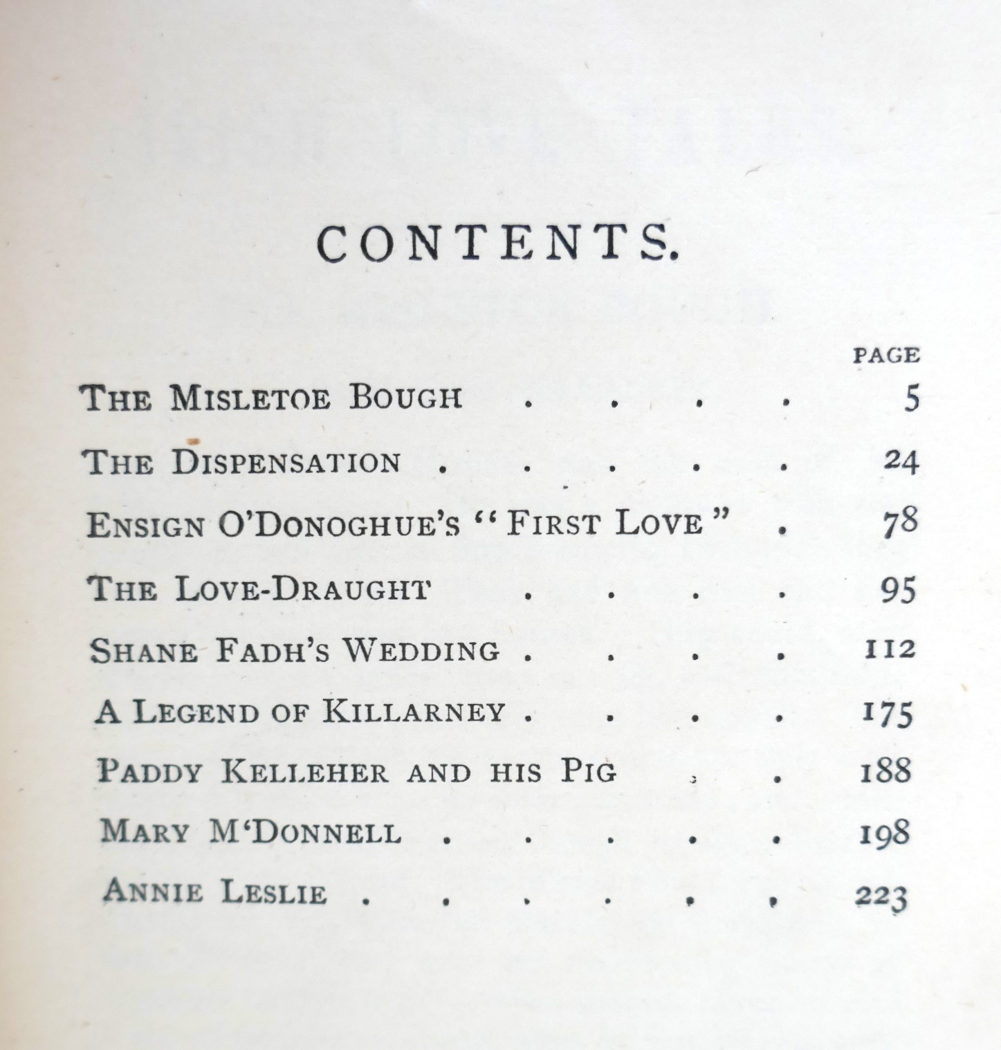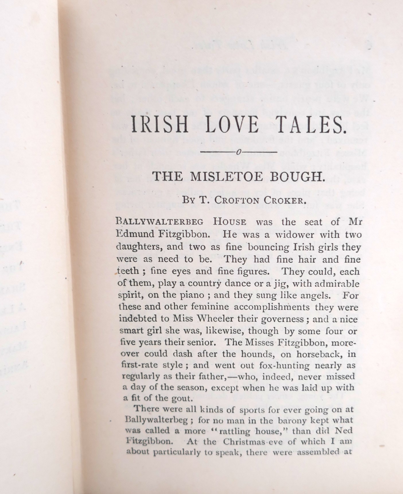 Love Tales By Irish Writers. London: W. Patterson, 1890. First Edition. Pp 256. Small 8vo. Half calf over floral patterned boards; title in gilt to spine. Light shelf-wear, overall a nice bright copy.