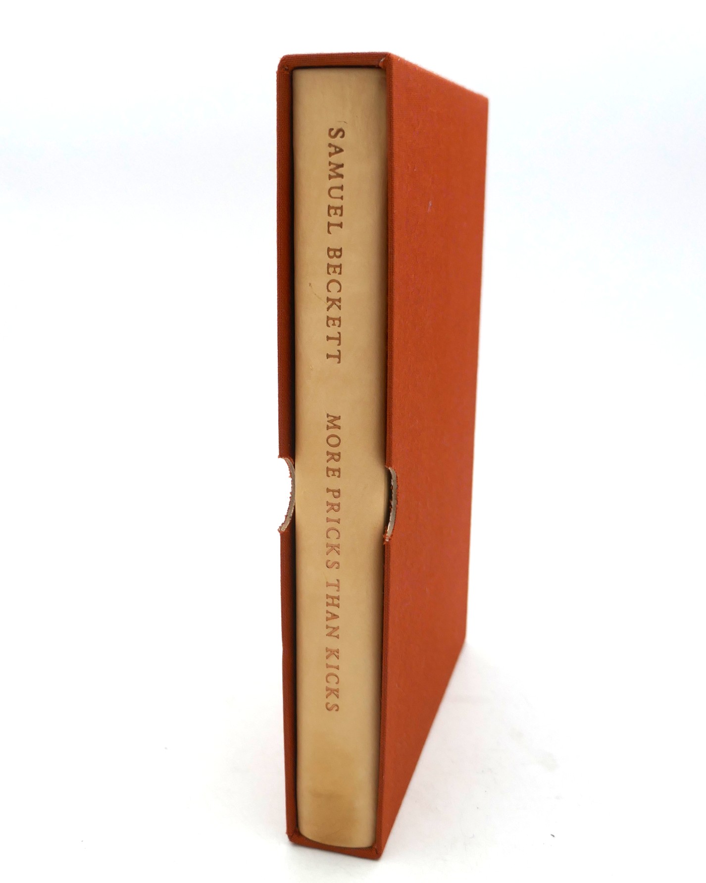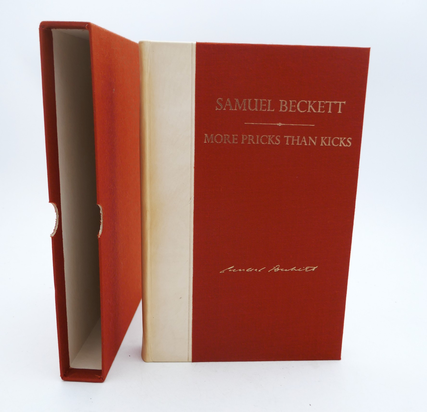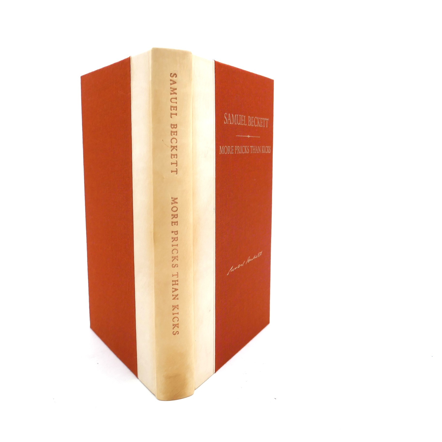 More Pricks Than Kicks. London: Calder & Boyars, 1970. First Edition, Limited Issue. Quarter cream calf, rust cloth boards. Titles to upper board and spine in gilt. Housed in publisher’s slipcase. A fine bright copy.