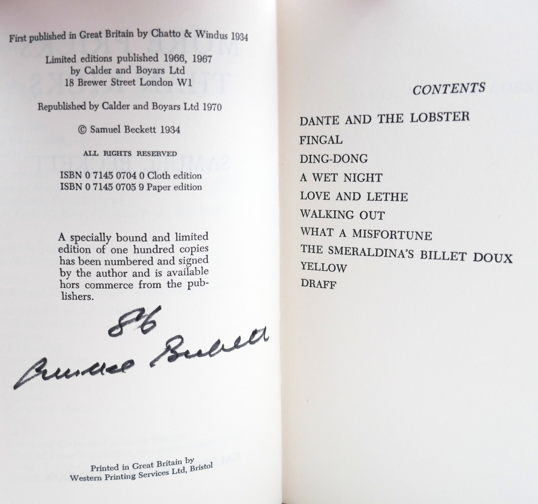 This was Beckett’s first published book of fiction in 1934; here published for the first time in limited edition form.