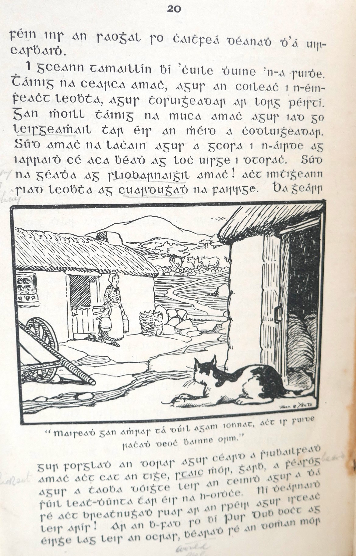 Jack Butler Yeats, the renowned Irish artist, contributed illustrations to several Irish language publications aimed at teaching Irish to school children.