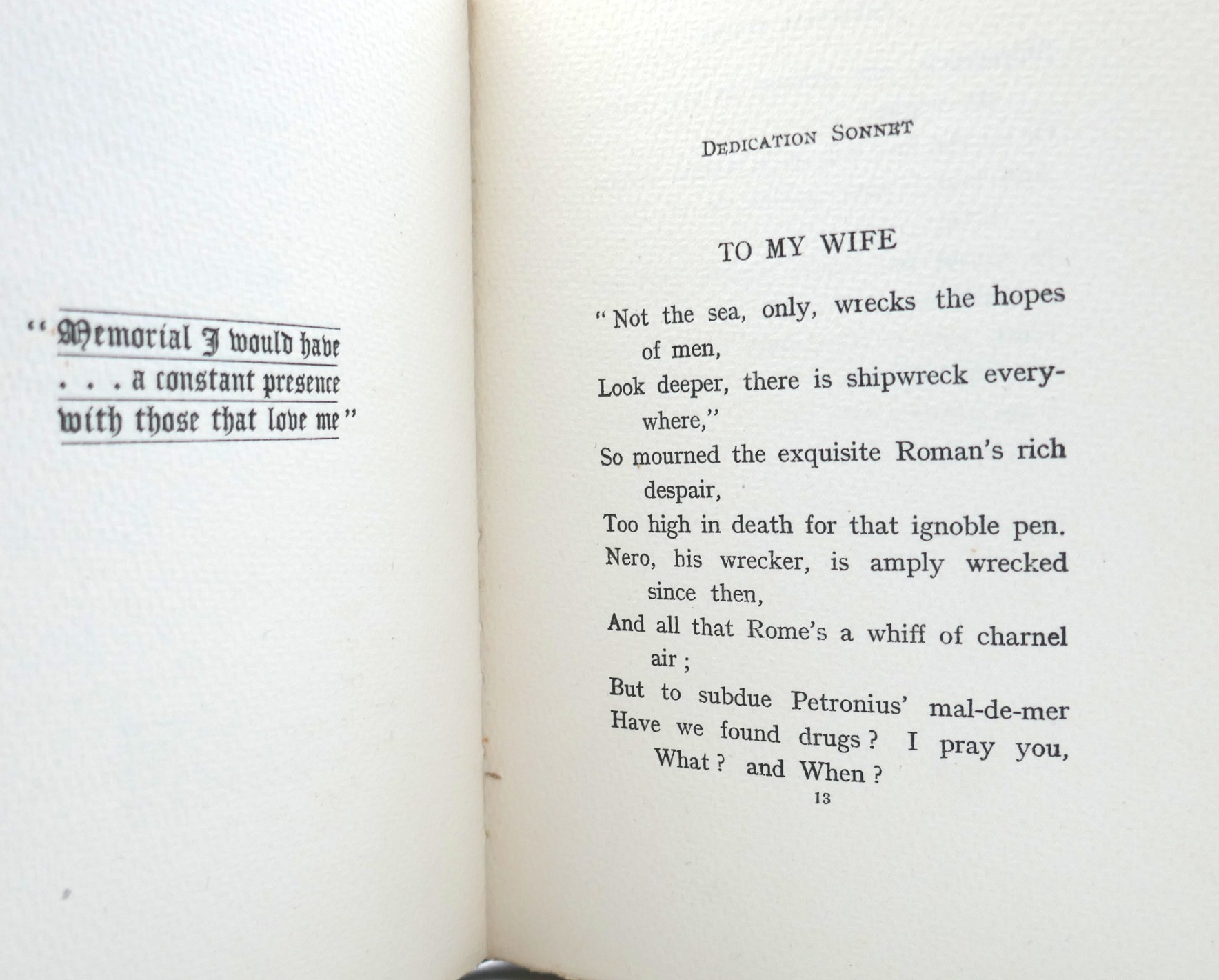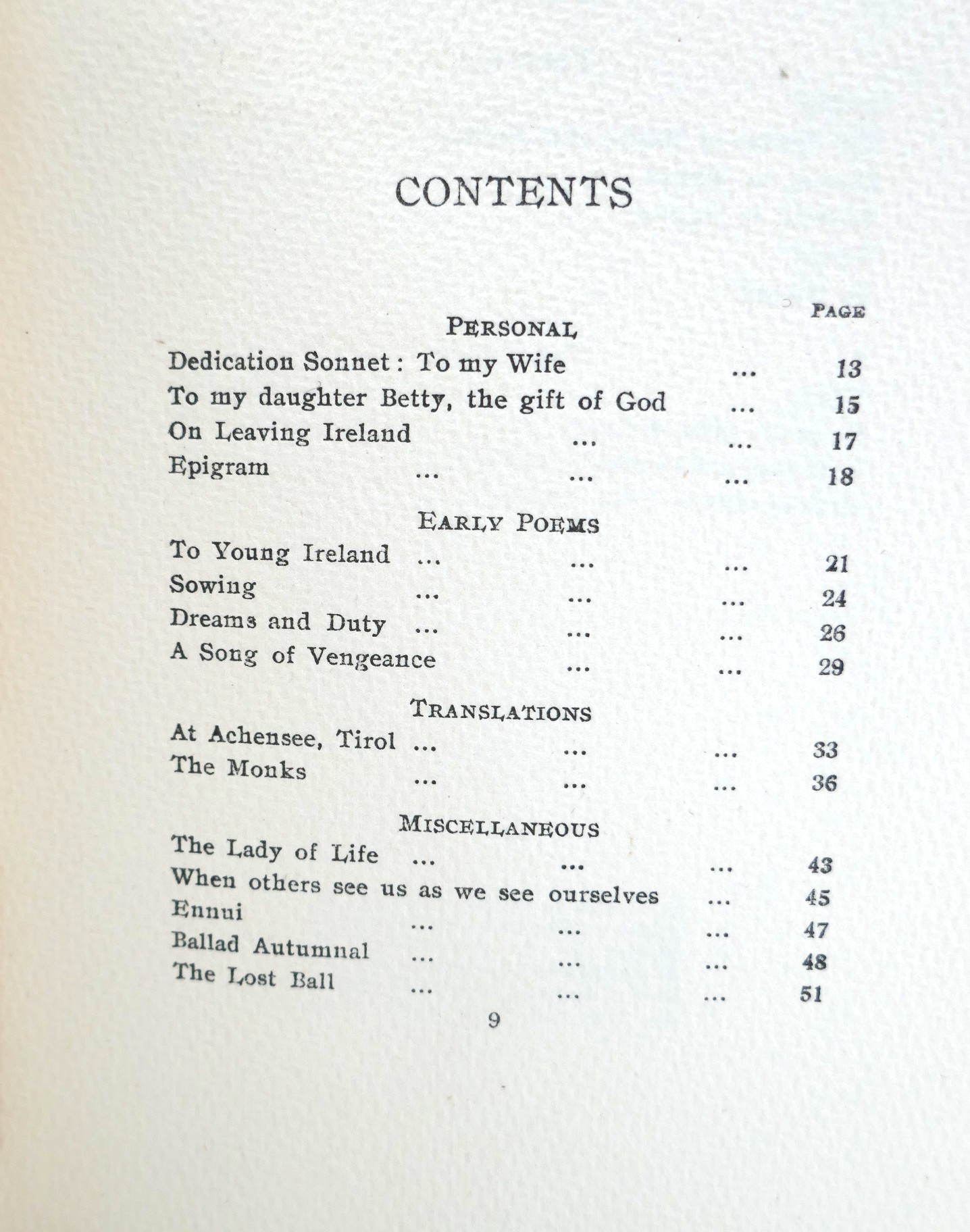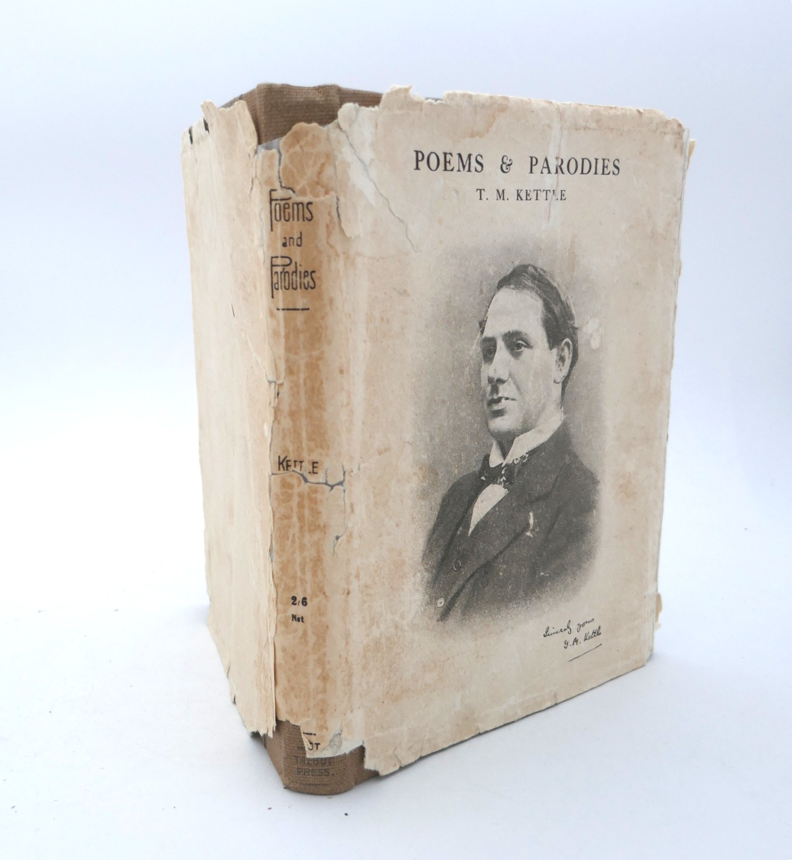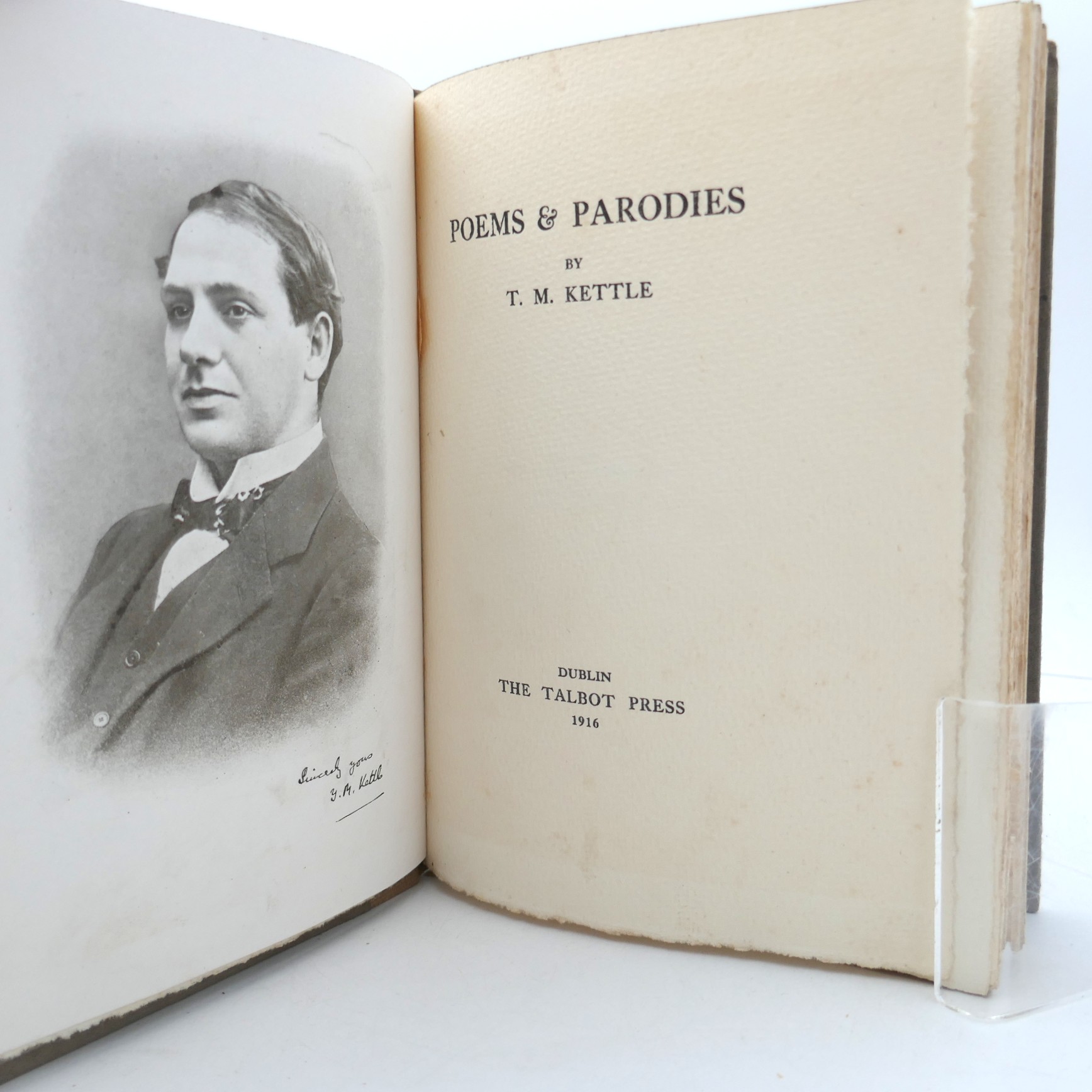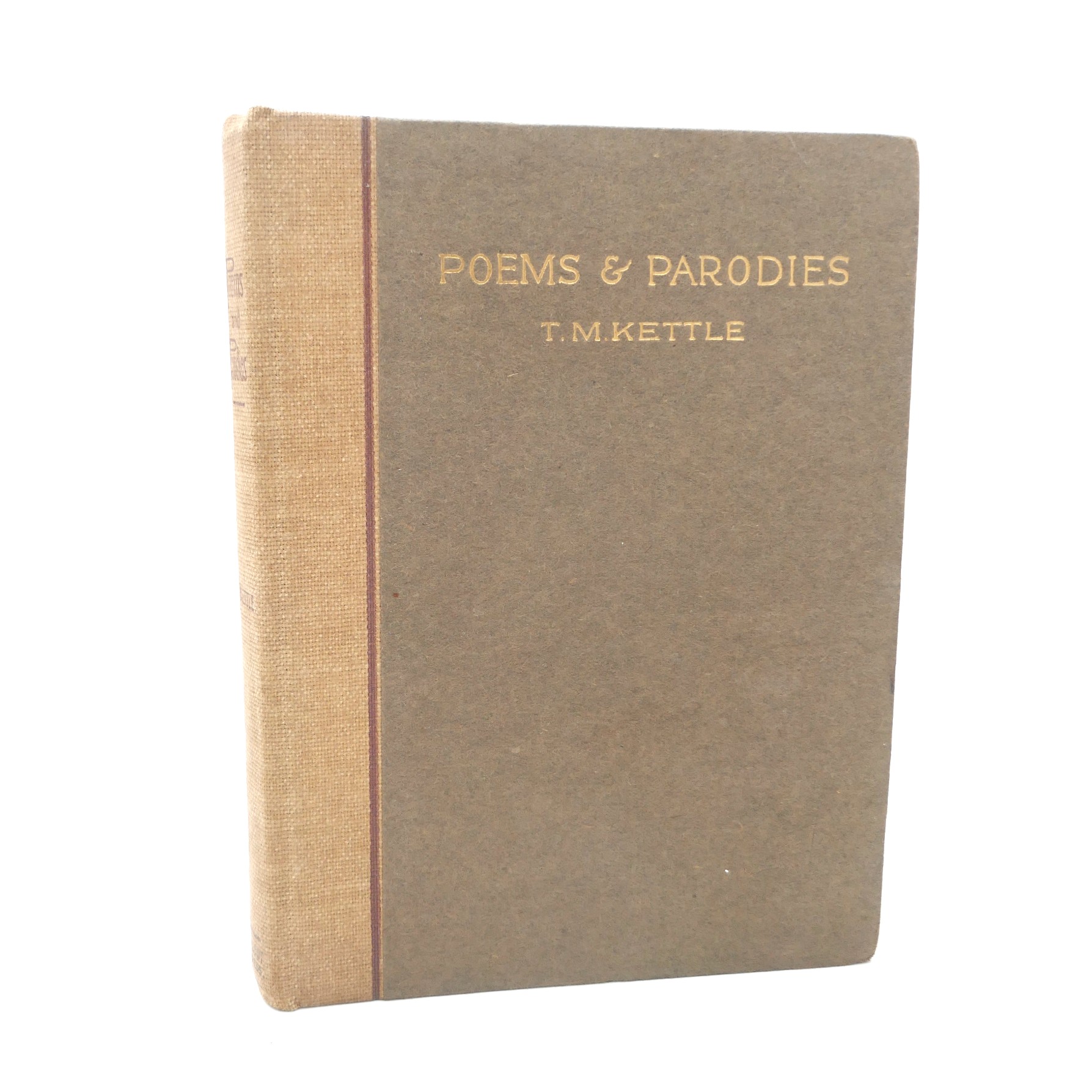Poems and Parodies. Dublin: Talbot Press, 1916. First Edition. Pp, 86, uncut. Frontispiece portrait of the author. Quarter linen, paper boards, title in gilt to upper cover & on spine. In the scarce publisher’s dust jacket, featuring a portrait of the author with facsimile signature to upper cover. Book in fine bright condition, the jacket heavily worn along the spine and edges.