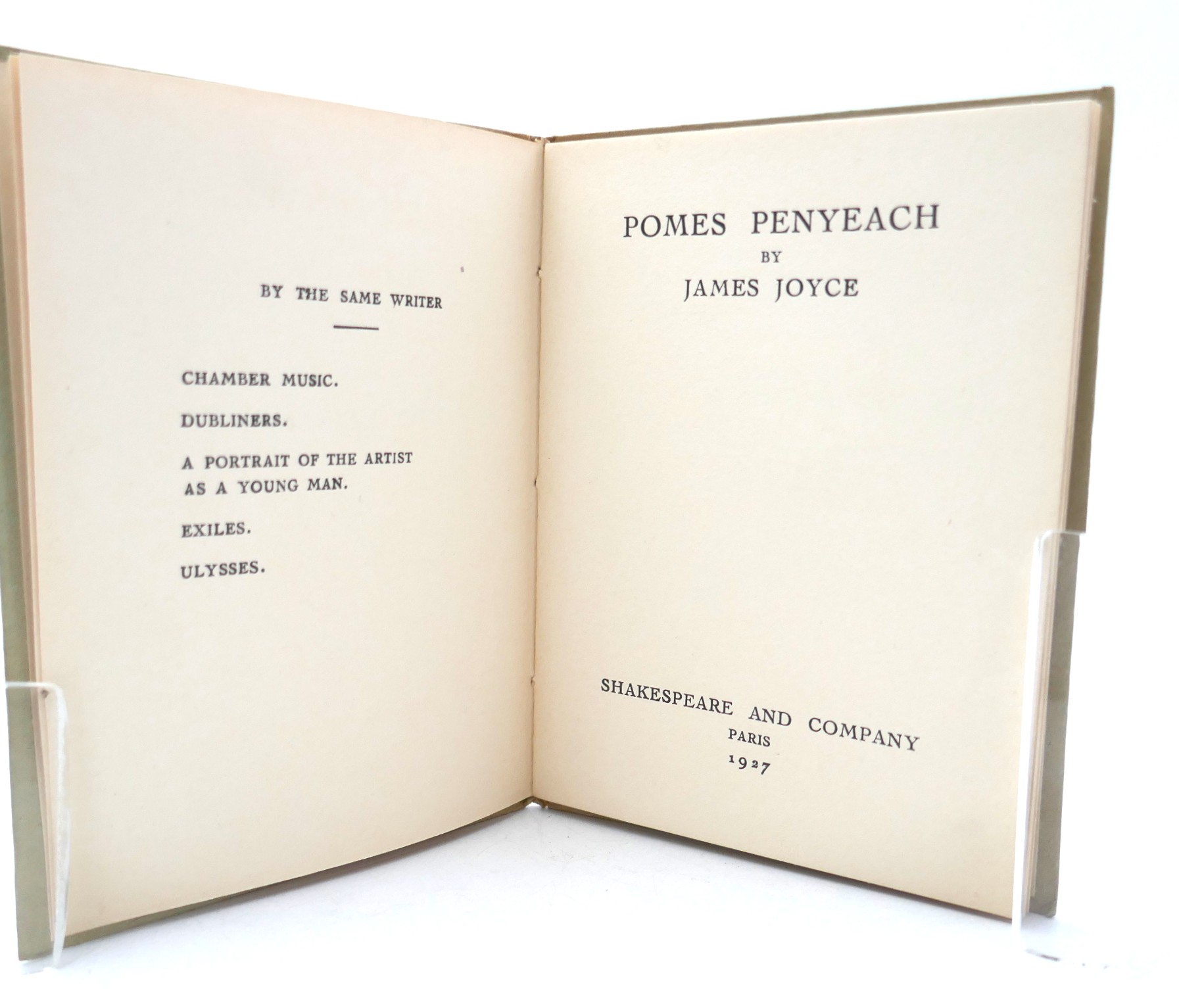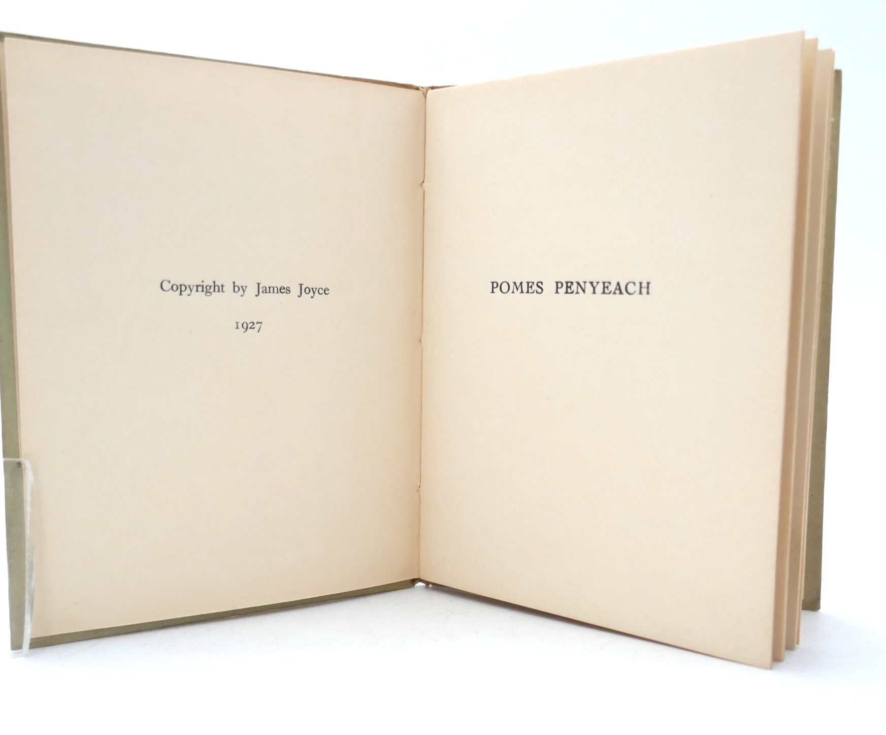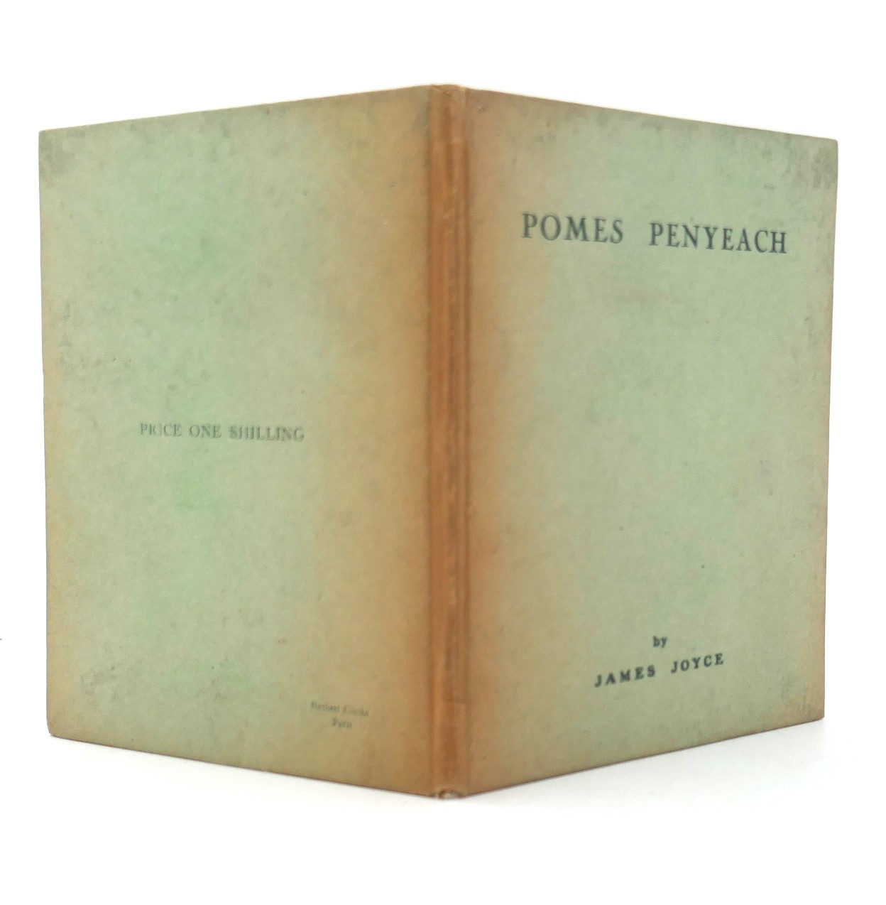 Pomes Penyeach. Shakespeare and Company, Paris, 1927. First Edition. Publisher’s pale green paper, title printed in dark green. With errata slip tipped-in at end. Light browning to margins along spine(as usual), otherwise a nice bright copy of this delicate item.