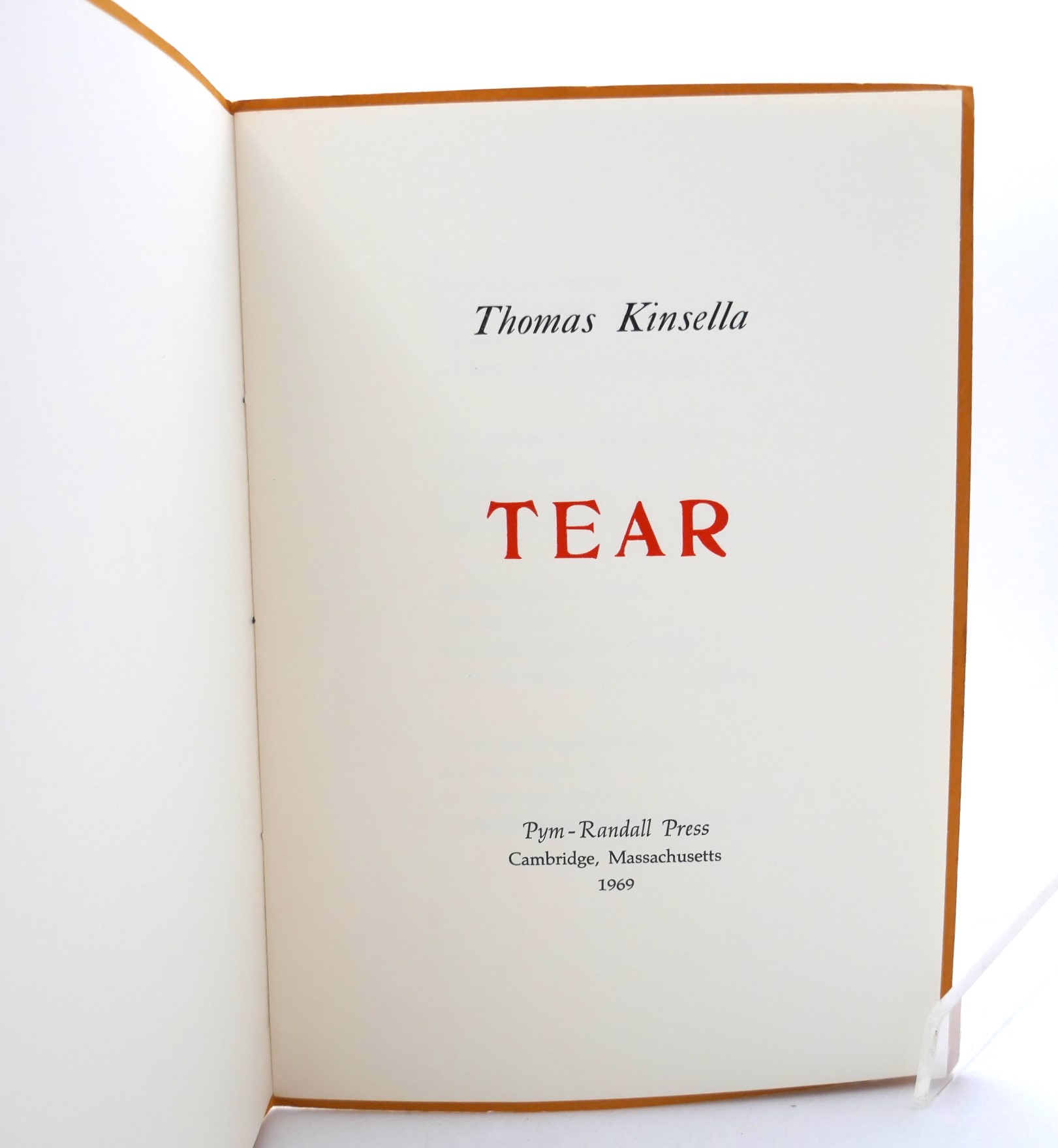 Tear. Cambridge MA: Pym-Randall Press, 1969. First Edition, Limited Issue. Fine copy in sewn mustard wrappers, lettered in black.