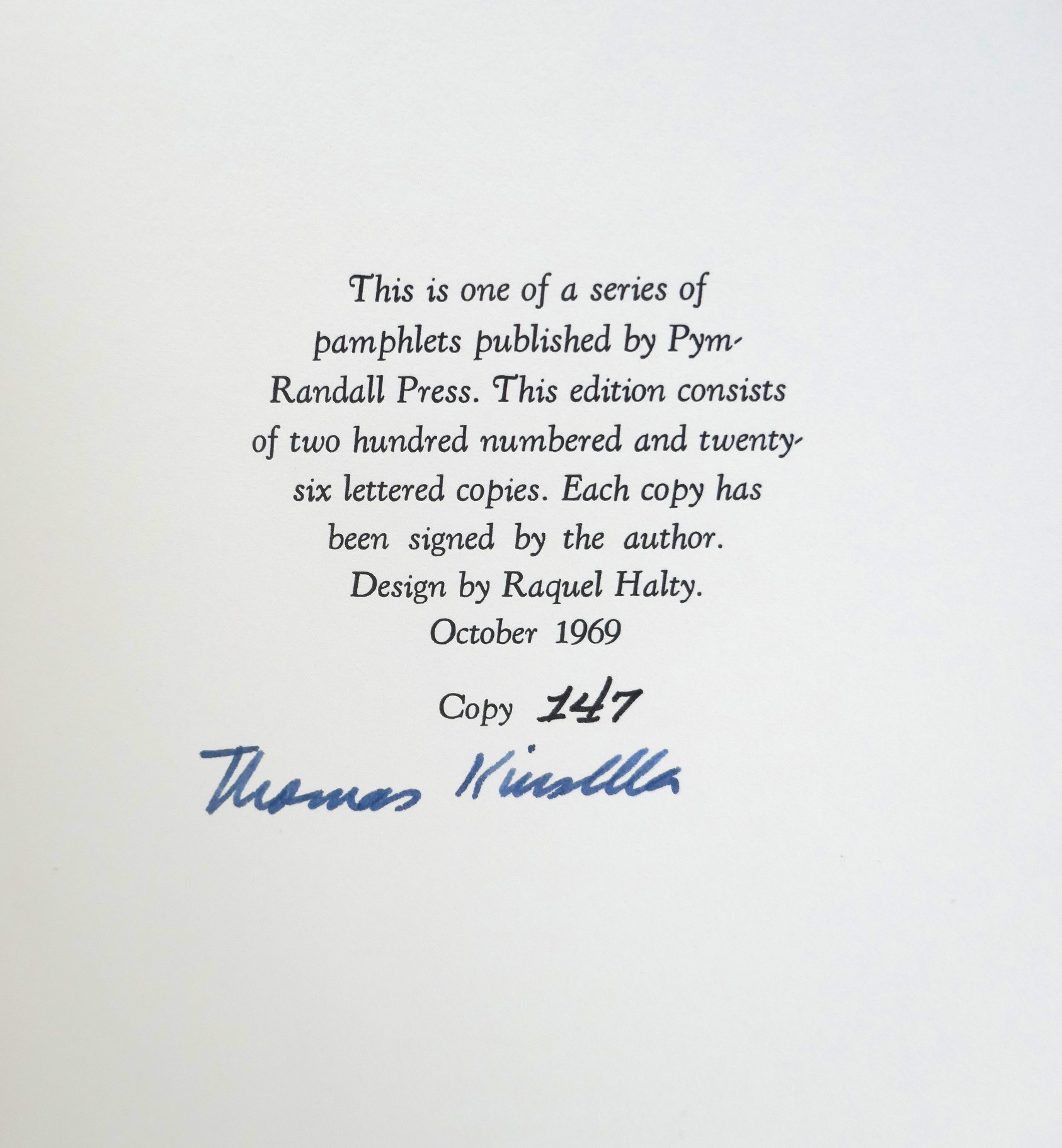Limited Edition, 200 Numbered Copies, Signed by Kinsella on limitation colophon.