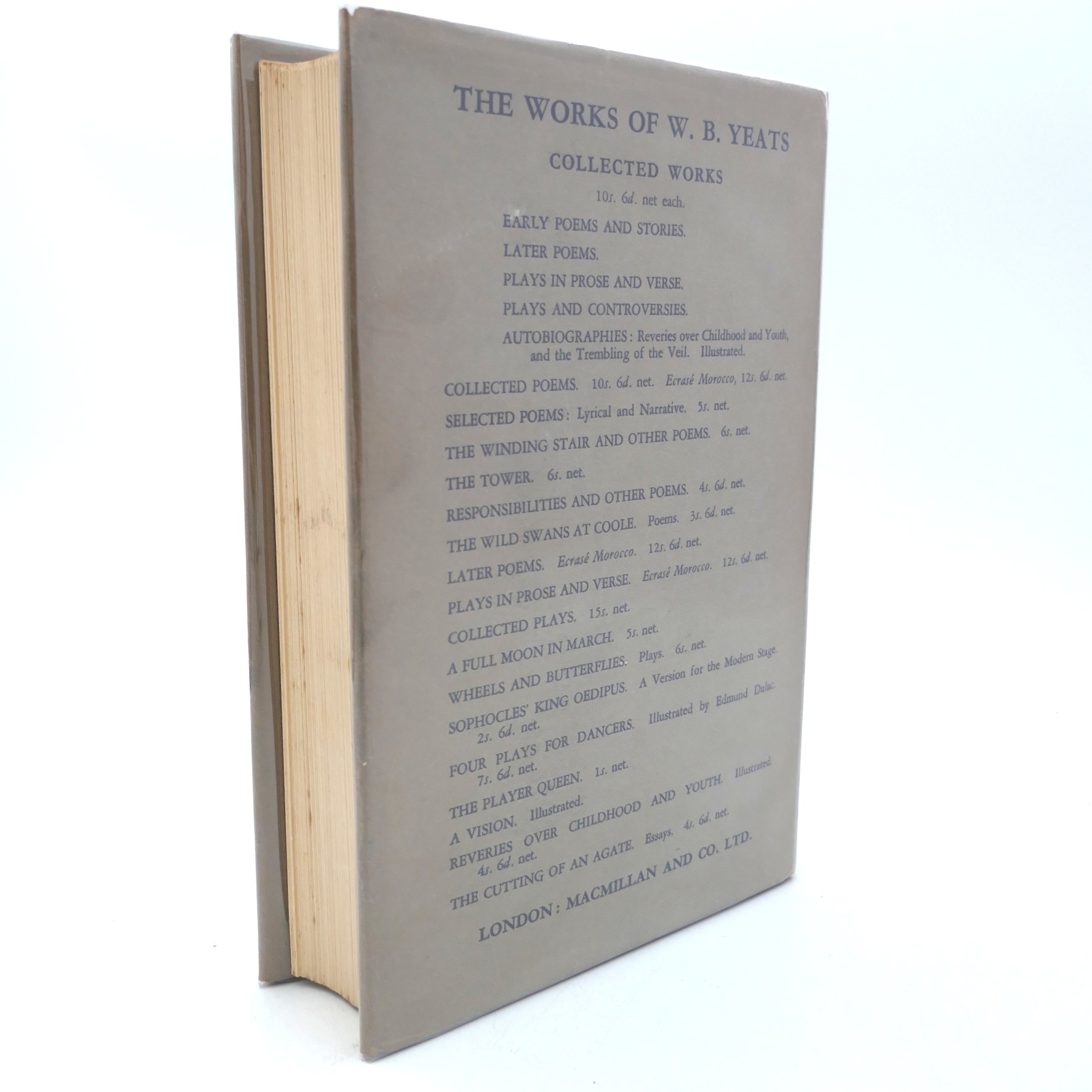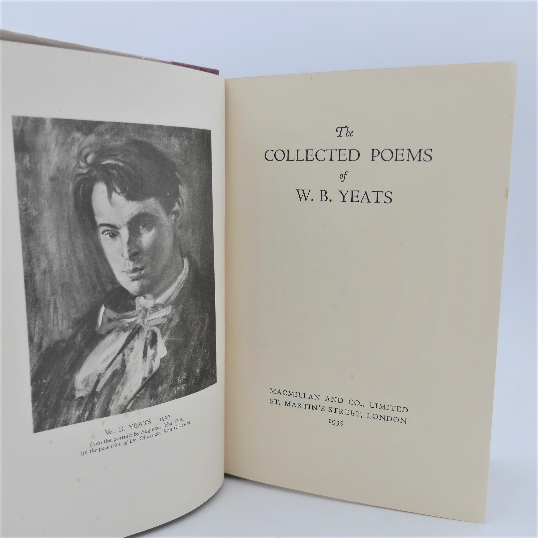 The Collected Poems. London: Macmillan, 1935. Third Impression. Pp xvi, 474. Maroon cloth, title in gilt, publisher’s grey dust jacket, printed in black. Jacket lightly chipped at head of spine, otherwise a nice bright copy.