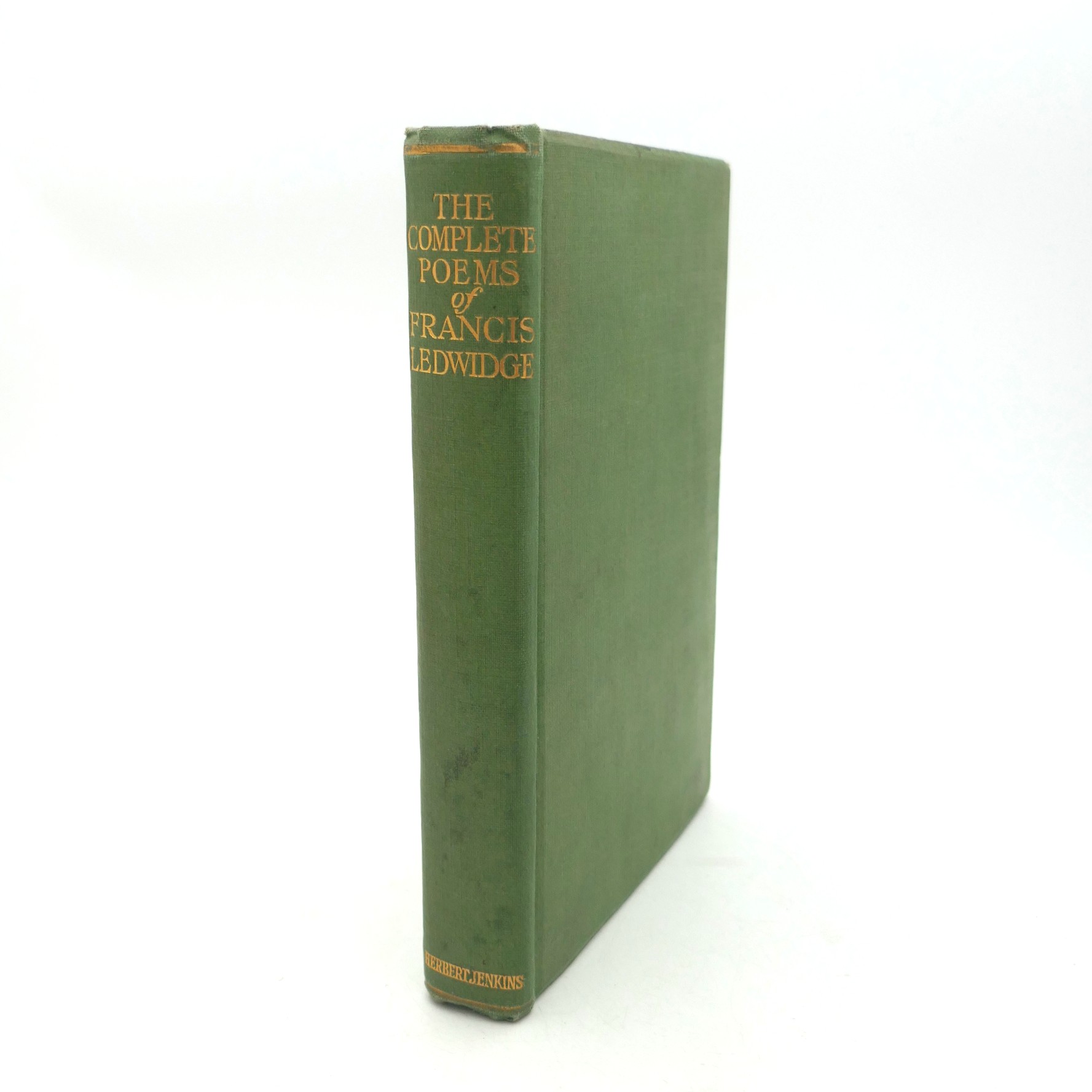 The Complete Poems of Francis Ledwidge. With Introductions by Lord Dunsany. London: Herbert Jenkins, 1919. First Edition. Pp, 112. Frontispiece portrait plate. Original green cloth boards, title in gilt to spine. A nice bright copy.