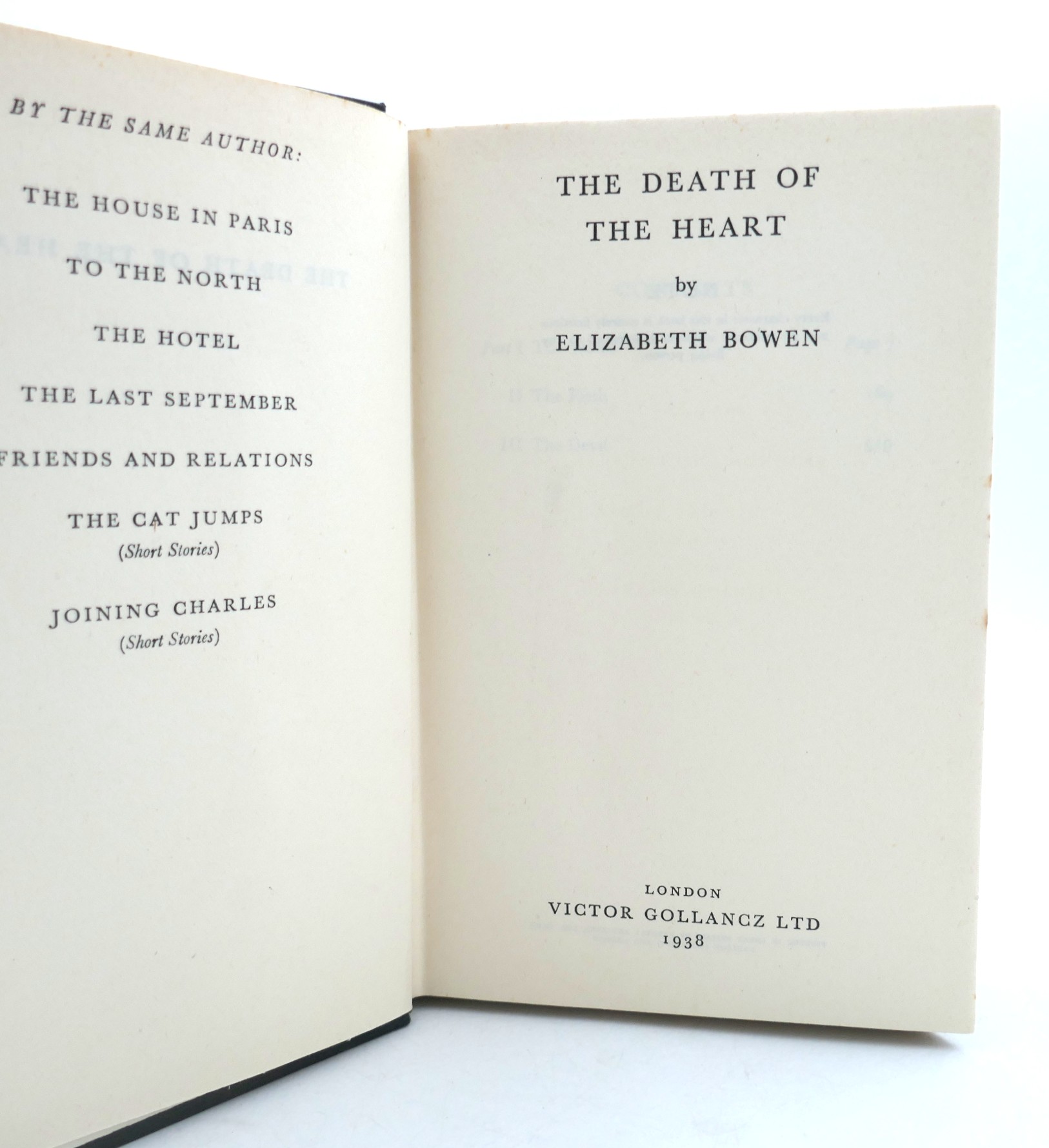 The Death of the Heart. London: Gollancz, 1938. First Edition. Pp, 443. Original black cloth boards, in publisher’s yellow dust jacket lettered in red & black. A fine bright copy.