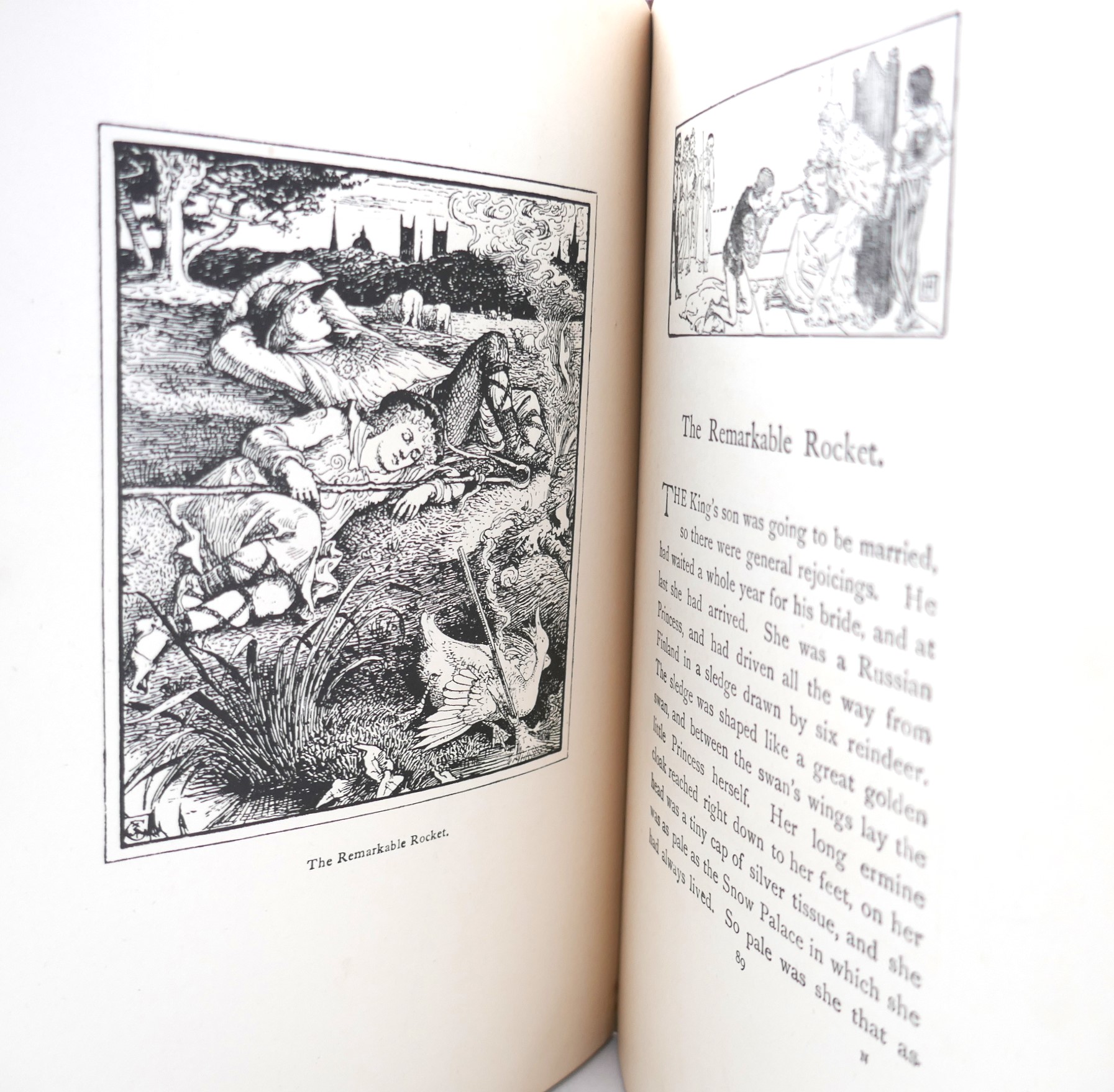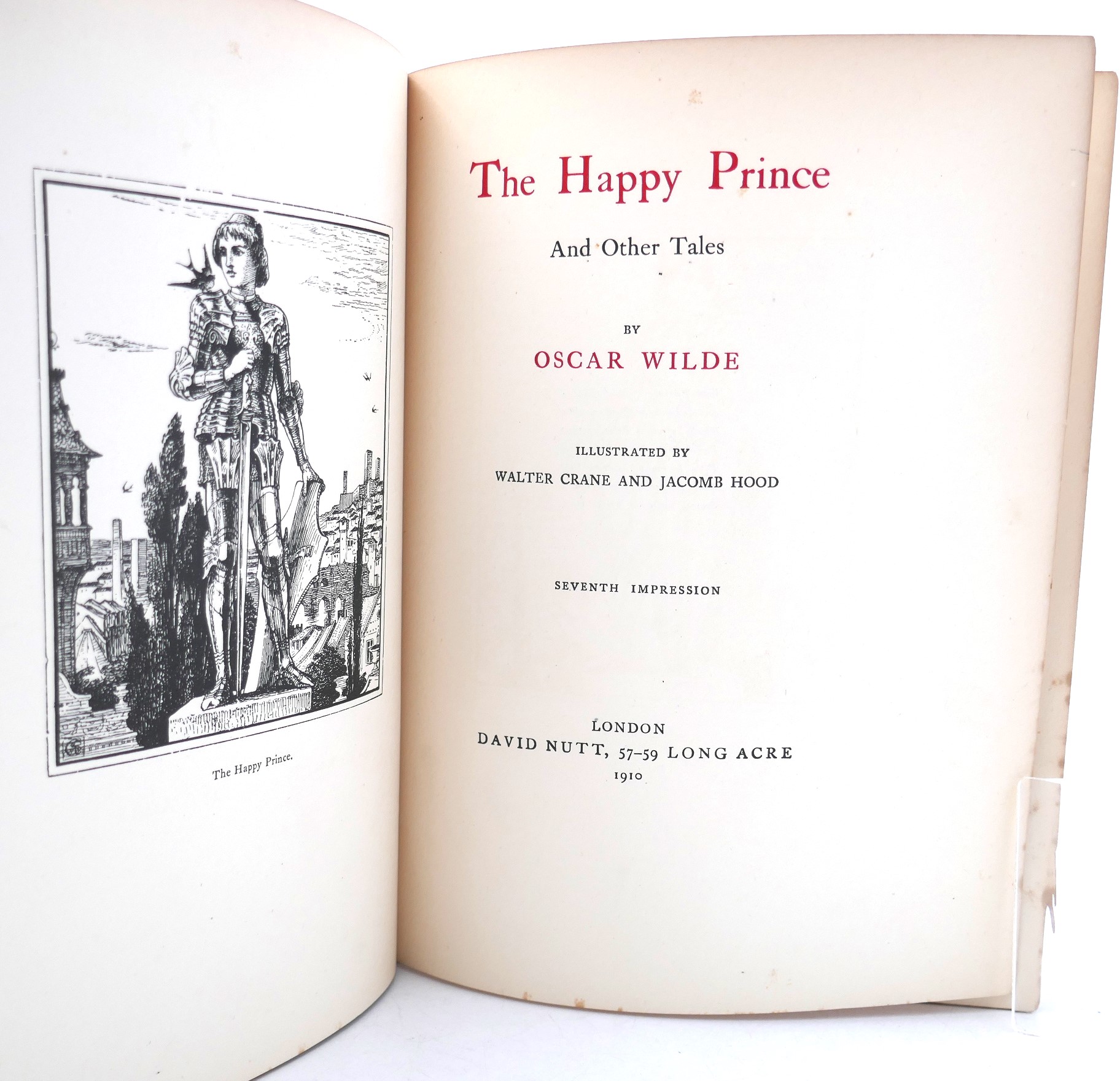 The Happy Prince and other Tales. Illustrated by Walter Crane and Jacomb Hood. London: David Nutt, 1910. Seventh Impression. Publisher’s pictorial parchment boards, lettered in black & red. Wear along spine, with neat repair to head, spotting to preliminary leaves, neat ownership name to front free endpaper.